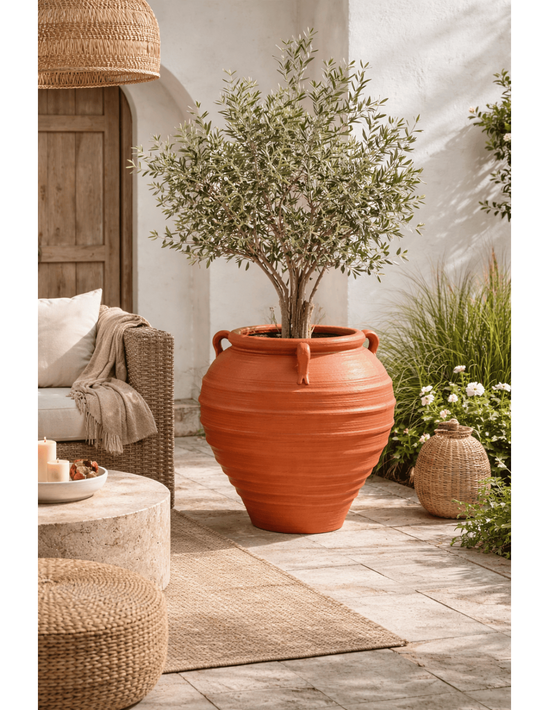 Avec ses 56 x 56 x 60 cm, Zurénia devient un élément central dans la décoration. Sa forme ample et ses anses renforcent son esprit artisanal, tandis que son volume lui permet de structurer une terrasse, un patio, une entrée ou un angle de pièce.