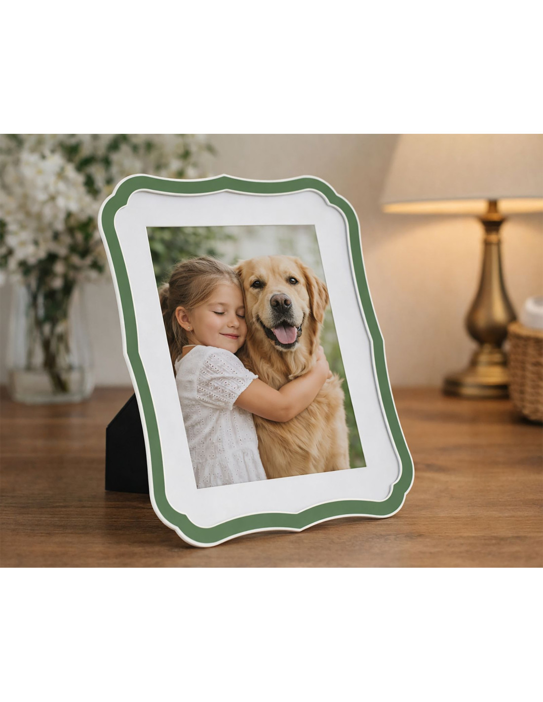 Grand Cadre photo moderne chic Volutes pour photo 20x25 cm Métal Vert Argenté Verre Margot