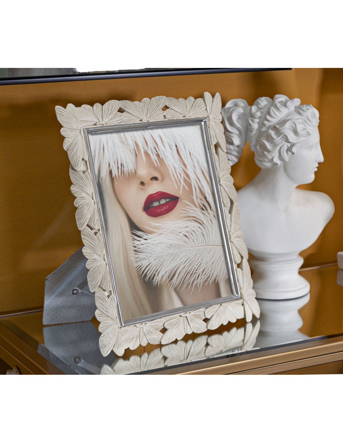 Grand Cadre photo romantique Papillons pour photo 20x25 Résine Blanc crème Butterfly