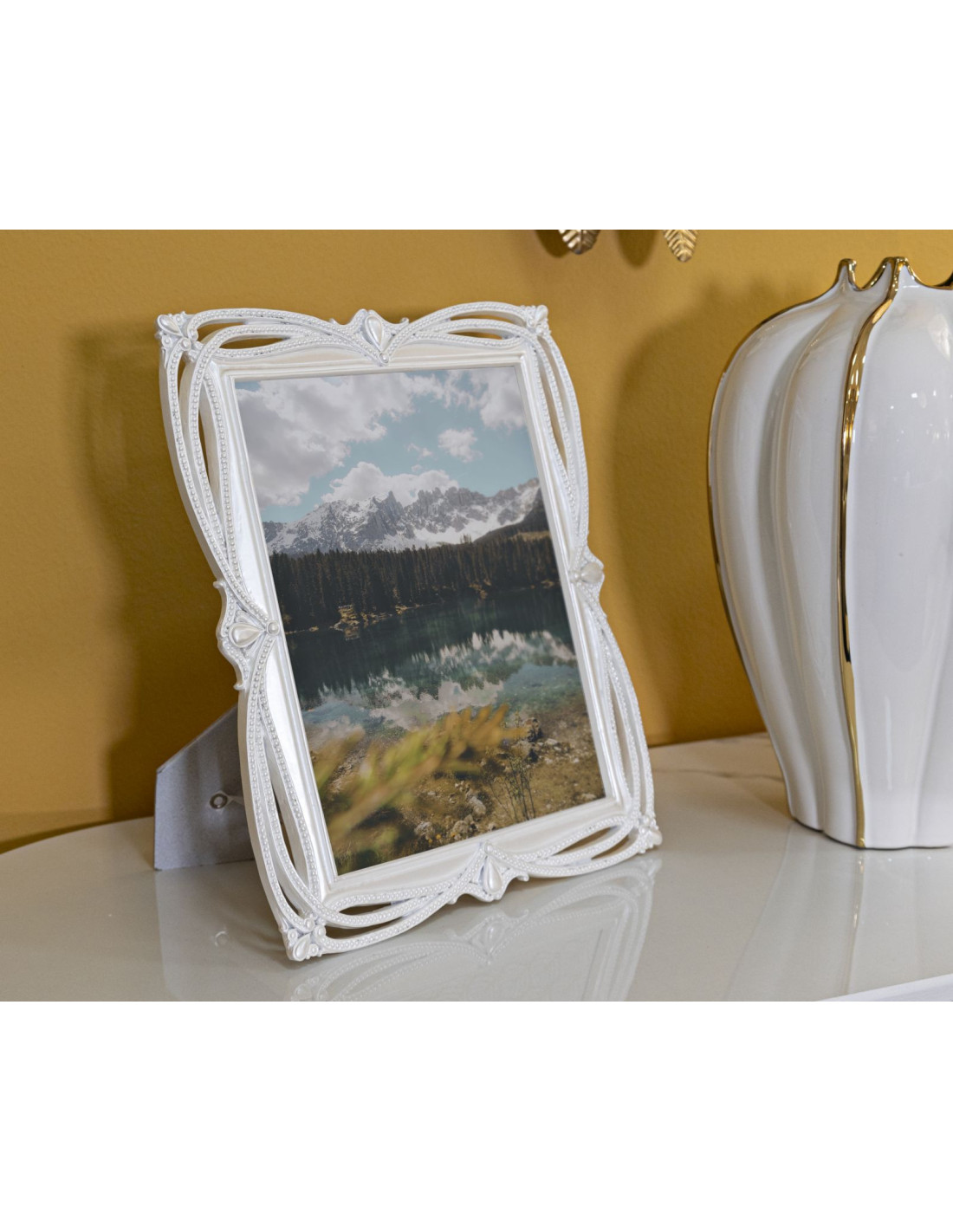 Grand Cadre photo romantique Rubans pour photo 20x25 Résine Argenté Ribbon