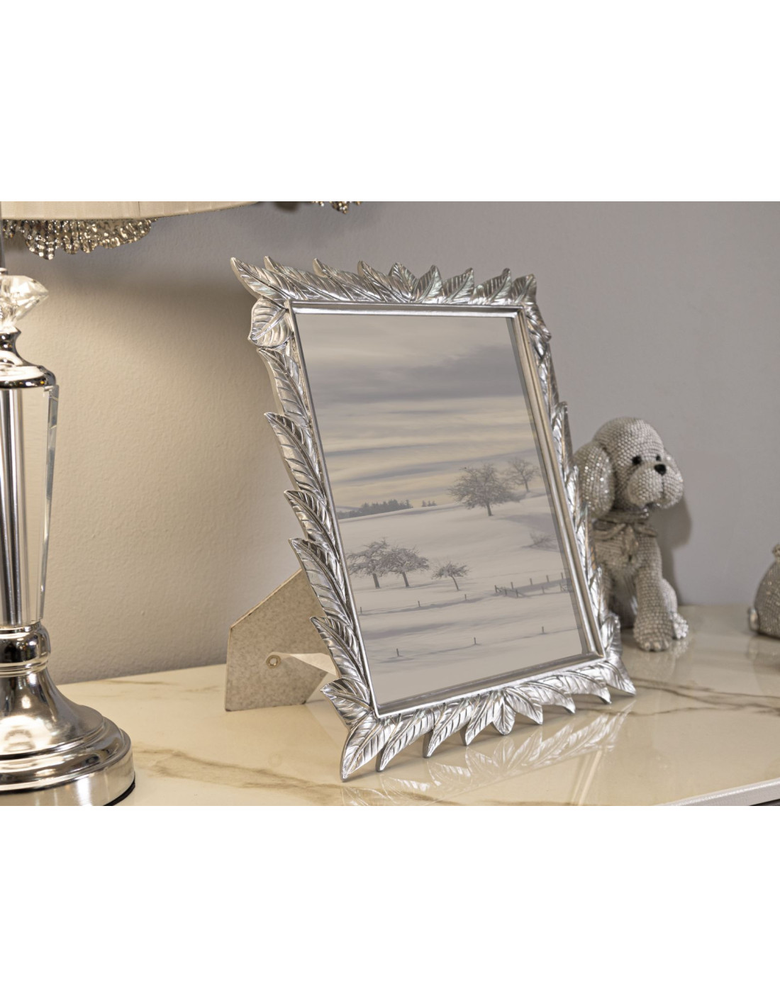 Grand Cadre photo style tropical Feuilles pour photo 20x25 Résine Argenté Leavy