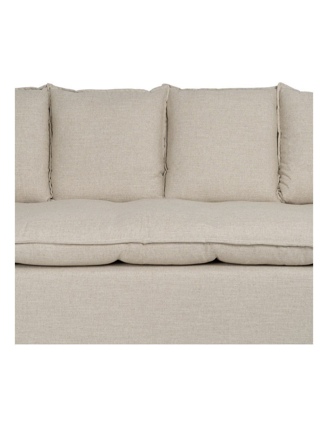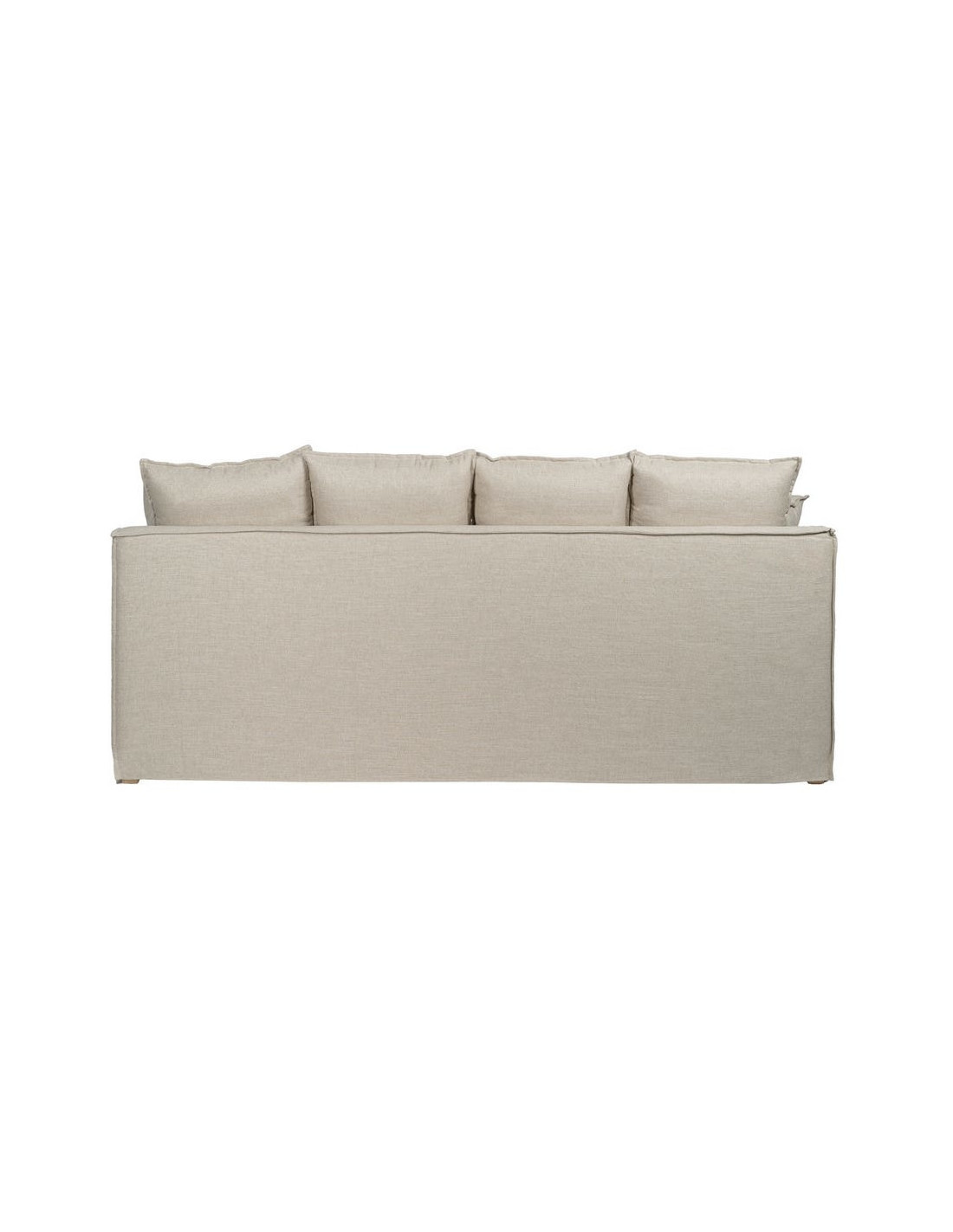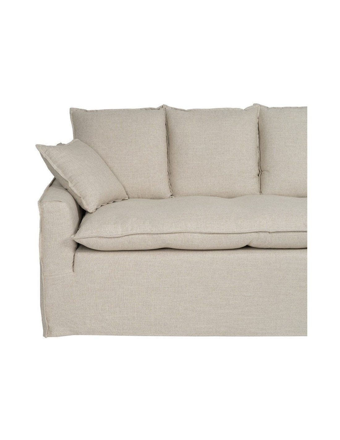 Grand Canapé moderne style Hamptons chic Droit 4 places 220 cm Tissu Beige naturel Bois de pin massif MDF Almareta