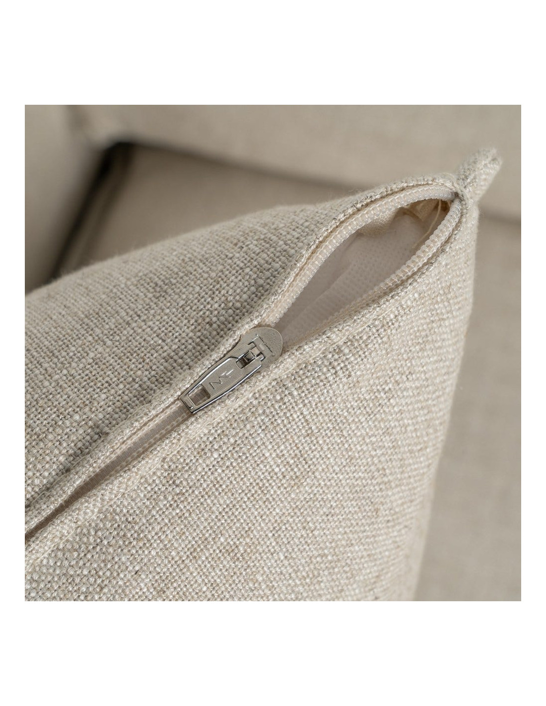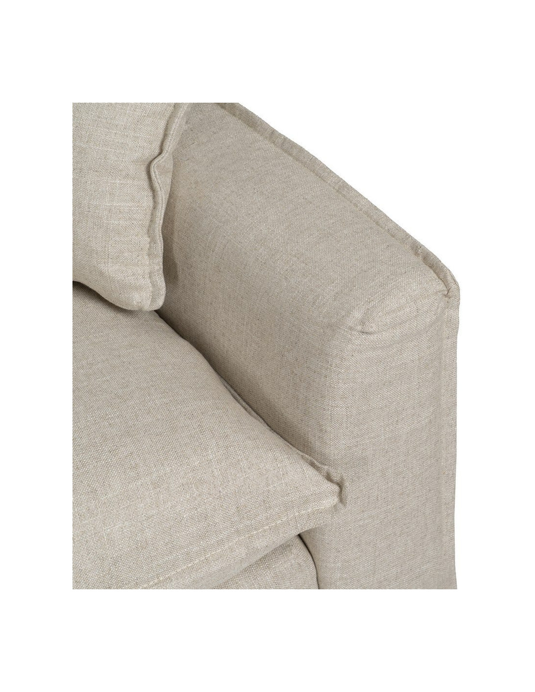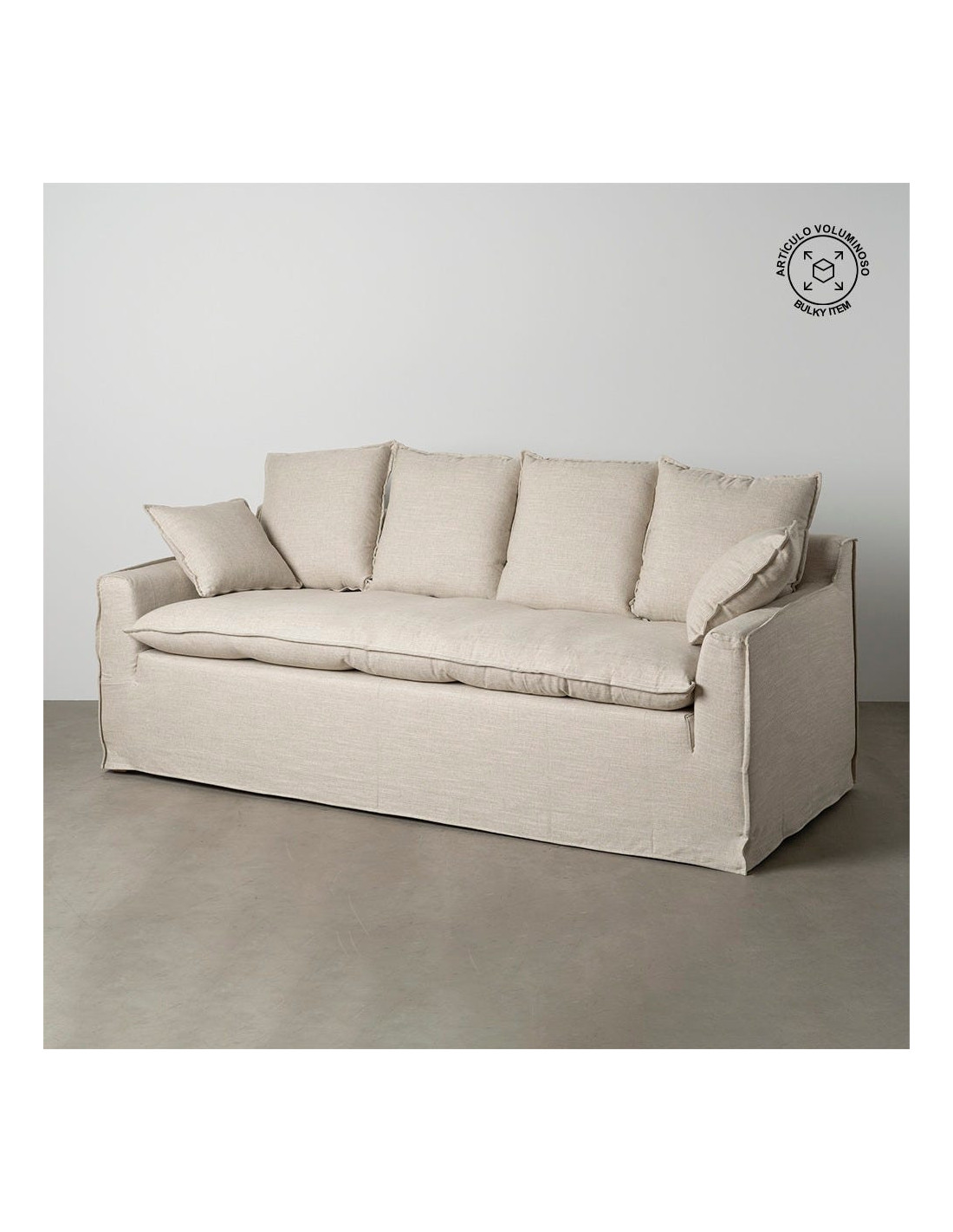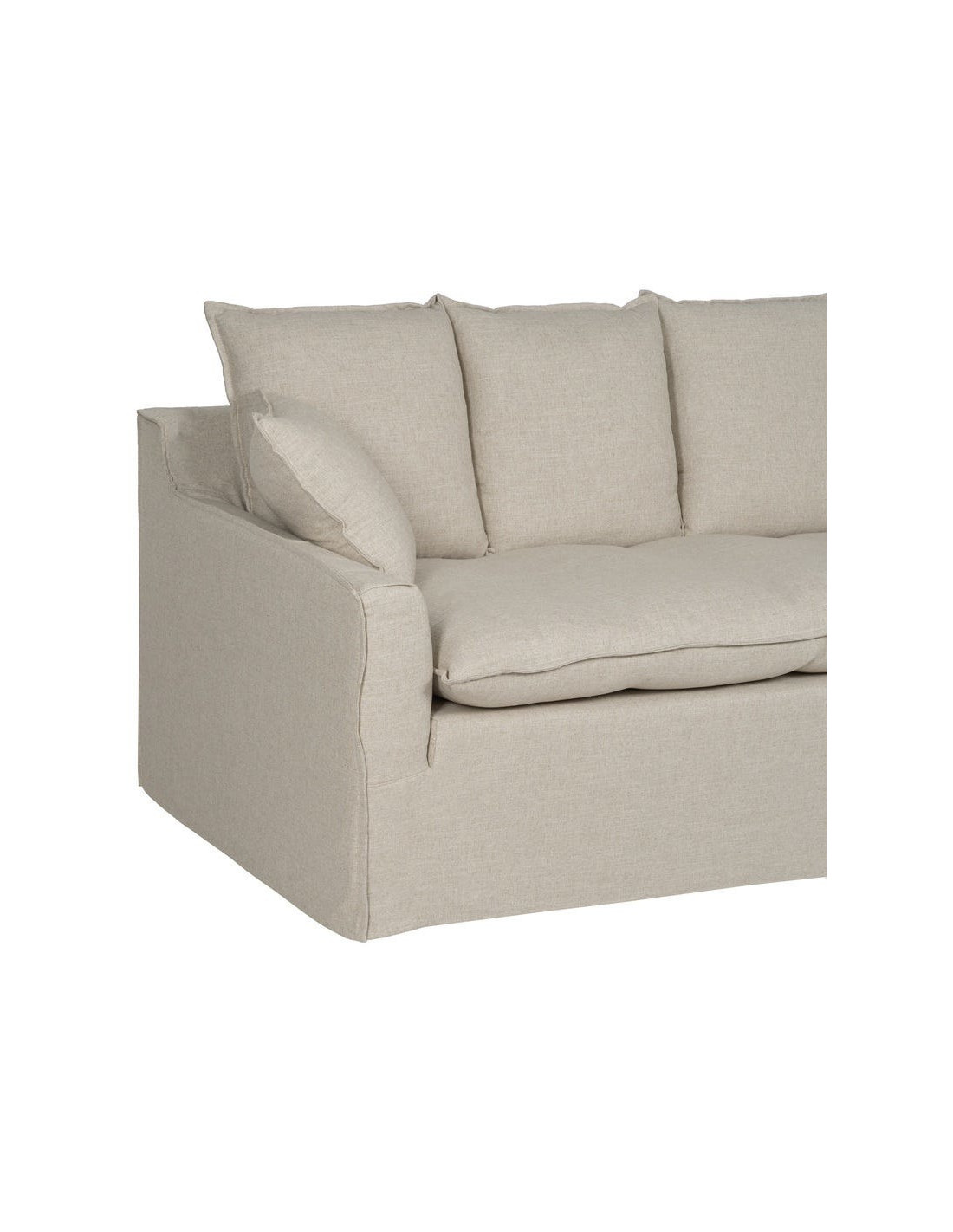 Grand Canapé moderne style Hamptons chic Droit 4 places 220 cm Tissu Beige naturel Bois de pin massif MDF Almareta