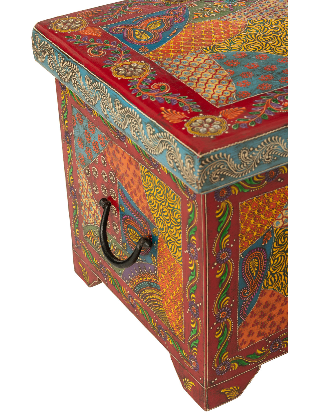 Grand Coffre de rangement indien 63 cm Bois de manguier Multicolore Delhi