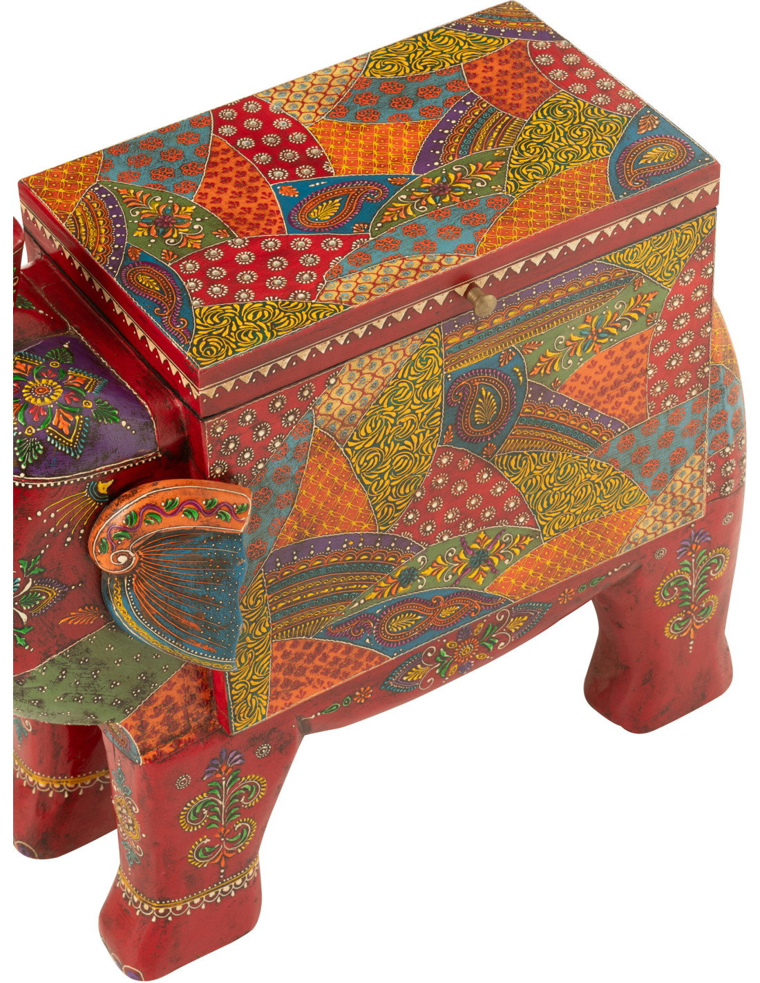 Grand Coffre de rangement indien Éléphant 79 cm Bois de manguier Multicolore Delhi