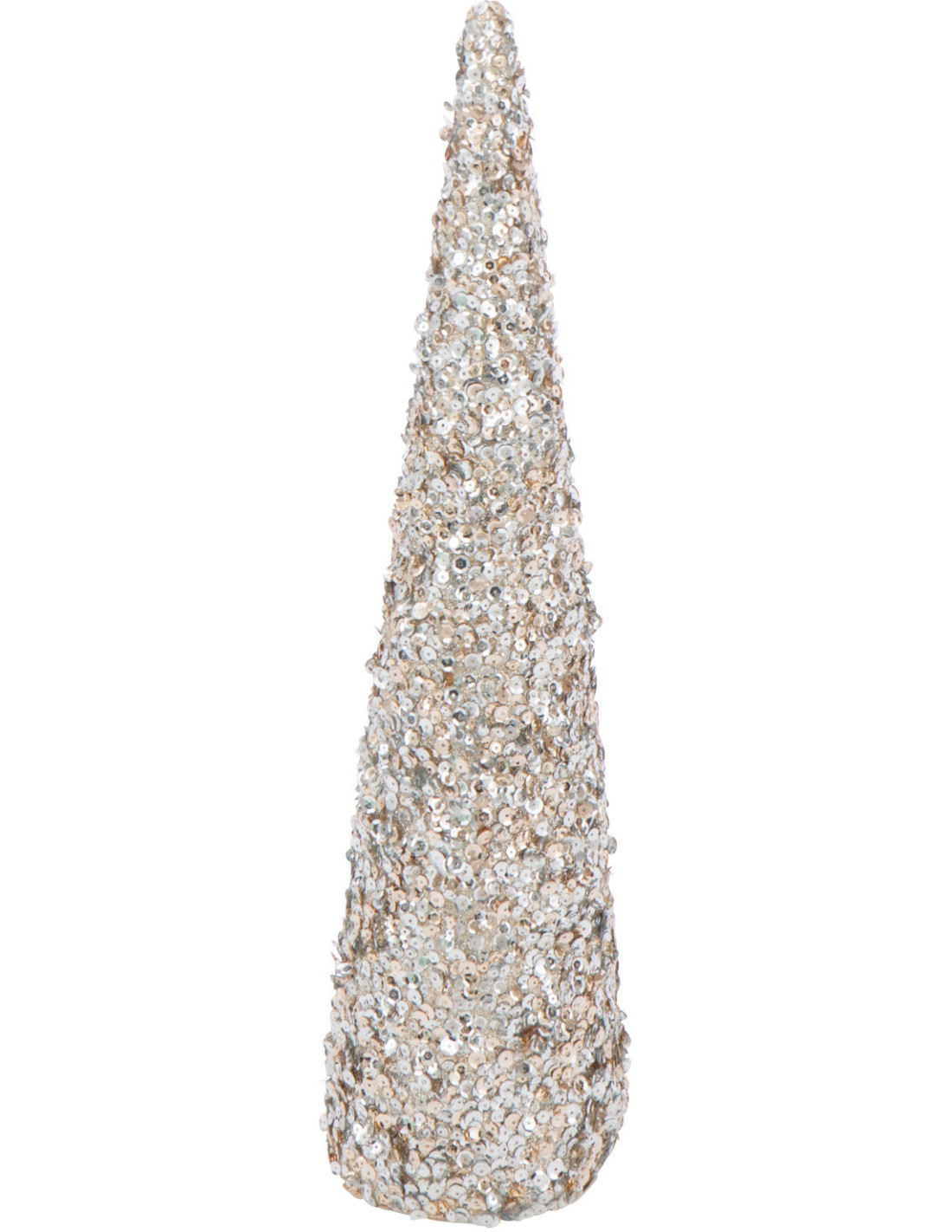 Cône de Noël Hauteur 45 cm en Velours Gris Perle Argenté