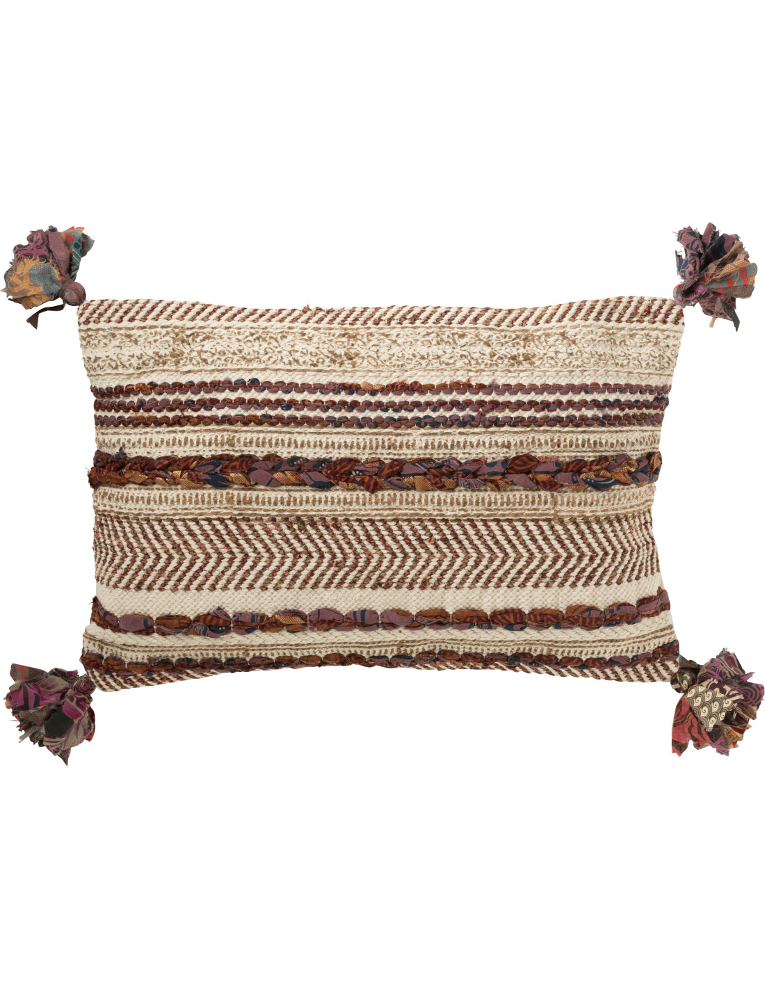 Grand Coussin africain Rectagulaire 60x40 en Coton Blanc crème Marron Avec pompons Chindi - 1