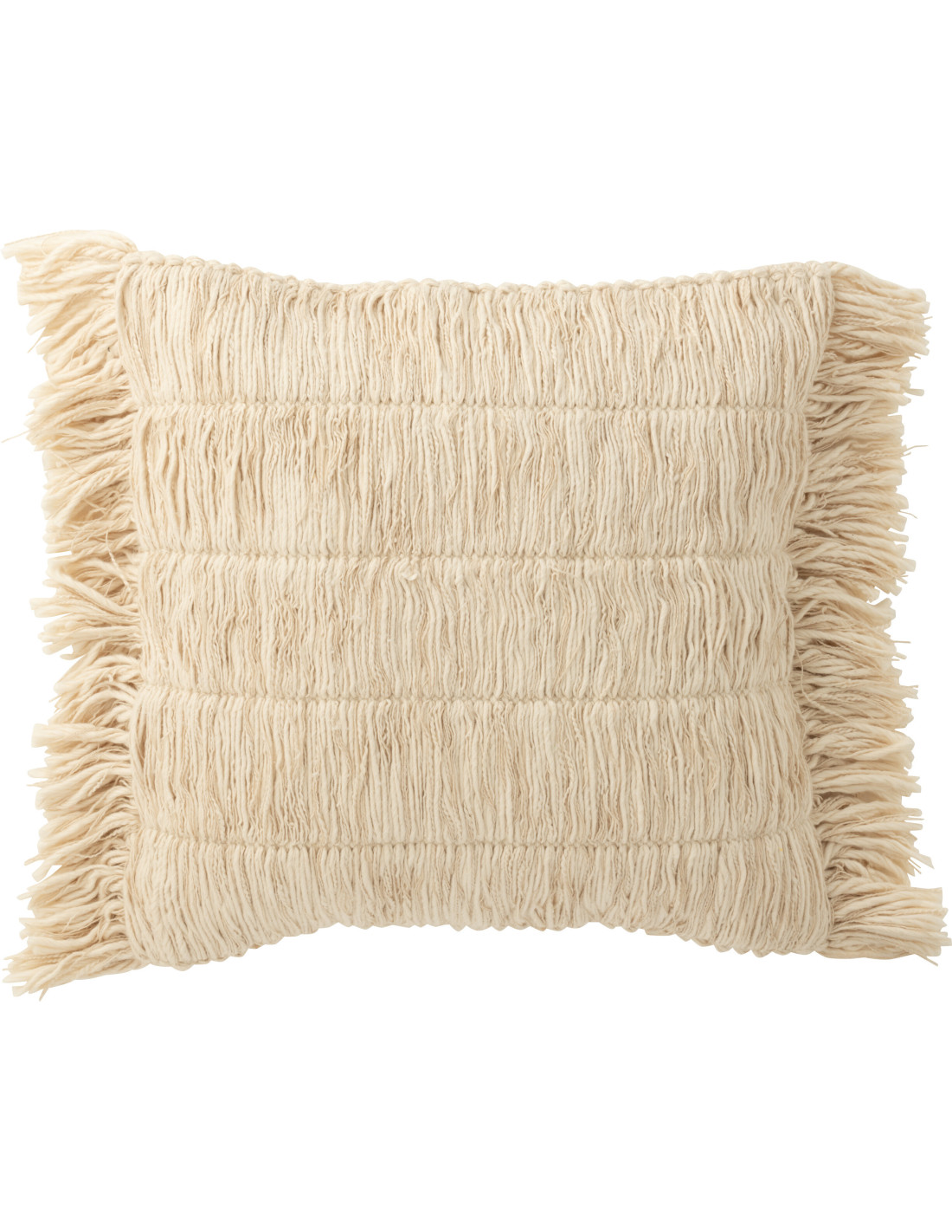 Grand Coussin bord de mer Carré 50x50 en Coton Blanc crème Avec franges Breeze