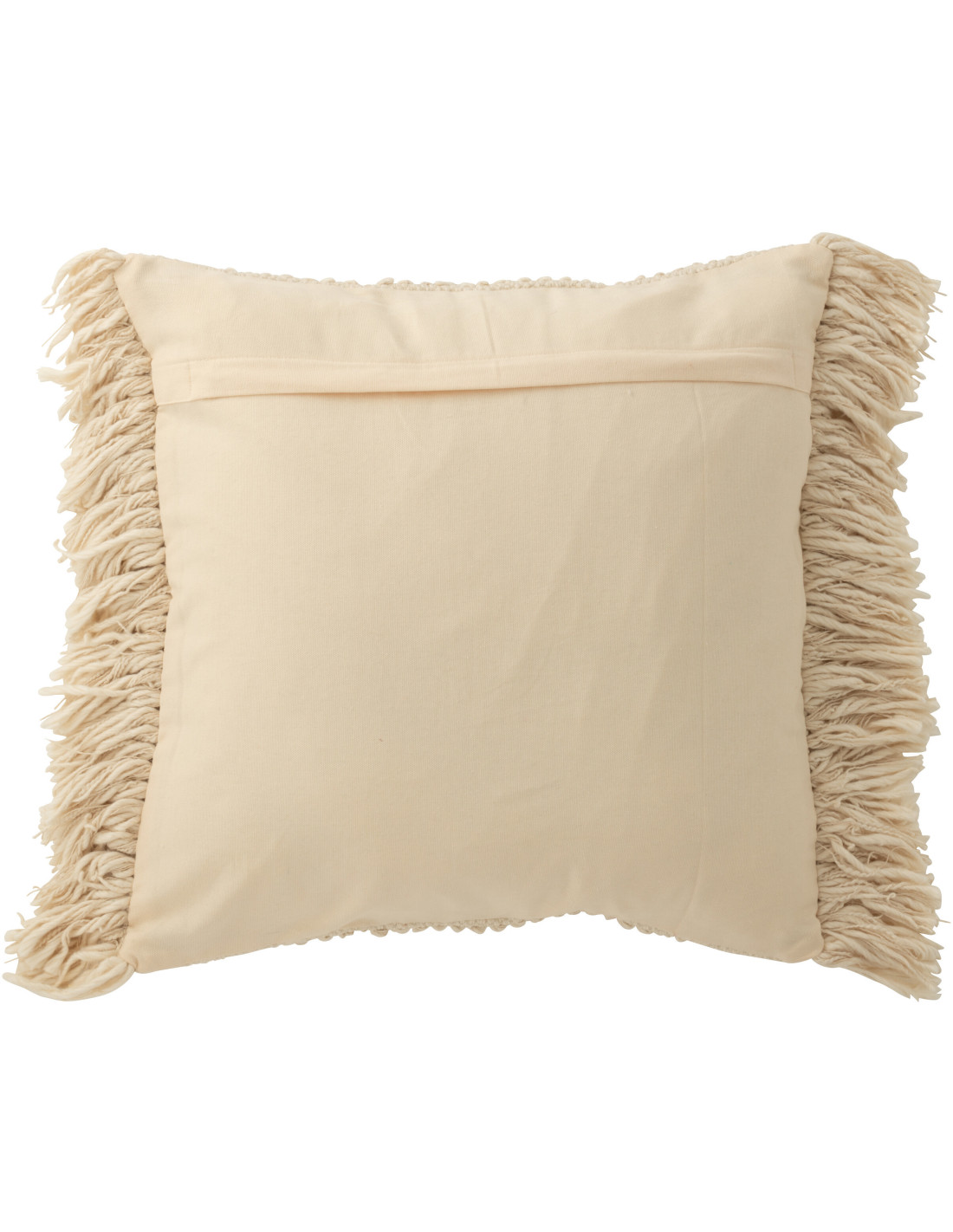 Grand Coussin bord de mer Carré 50x50 en Coton Blanc crème Avec franges Breeze - 1