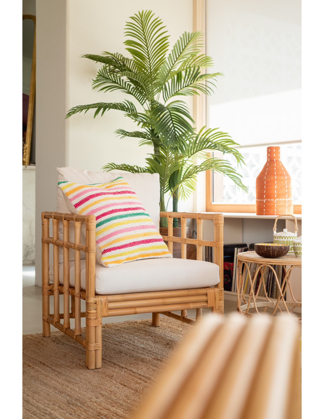 Grand Coussin moderne Carré 50x50 en Coton Blanc Multicolore Motif lignes Cocoon - 4