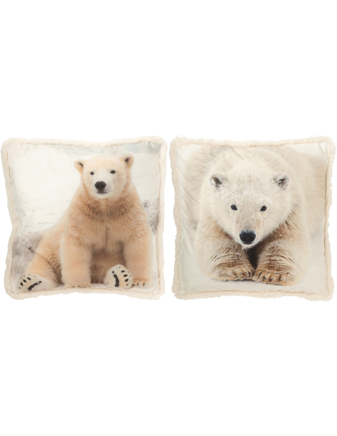 Grand Coussin original Ours polaire Carré 60x60 en Tissu Blanc cassé Beige Avec franges Wildora (Lot de 2) - 1