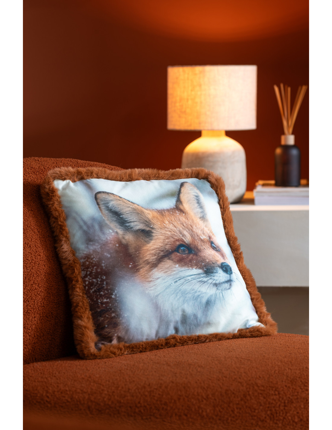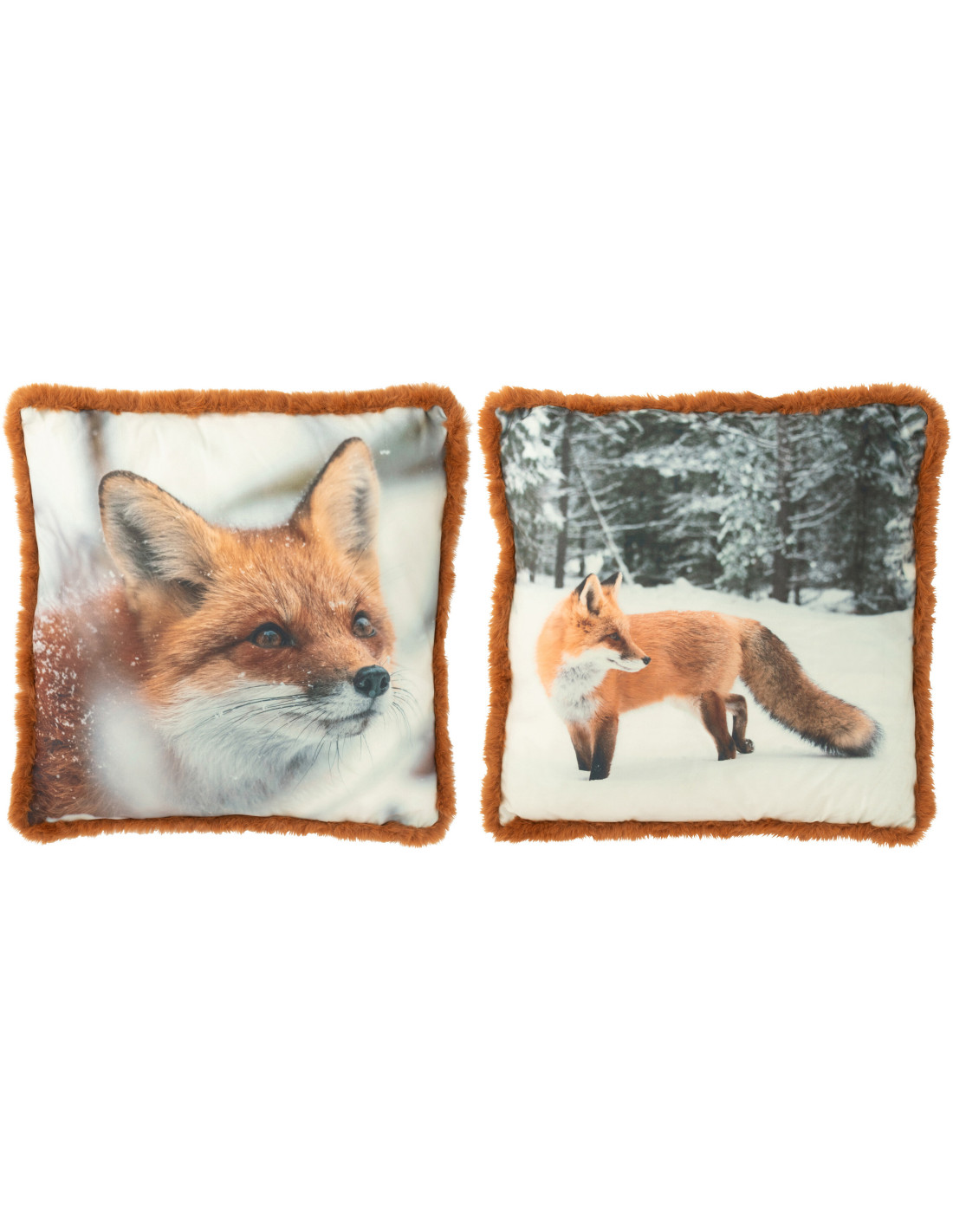 Grand Coussin original Renard Carré 60x60 en Tissu Marron Cognac Avec franges Wildora (Lot de 2) - 1