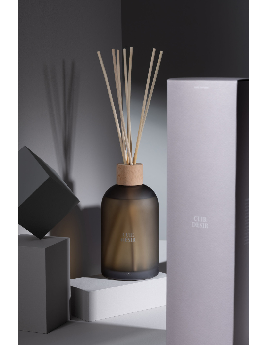 Grand Diffuseur de parfum à bâtonnets Mélange boisé Cuir Désir 550 ml Verre Beige Accord Essentiels