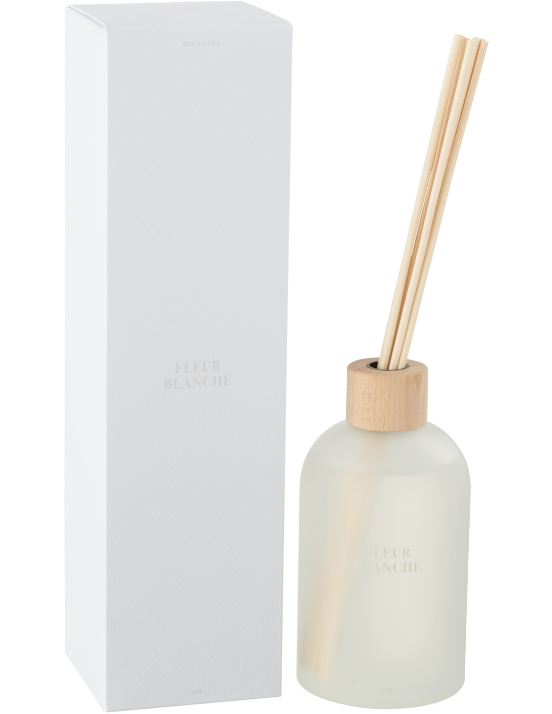 Grand Diffuseur de parfum à bâtonnets Mélange floral Fleur Blanche 550 ml Verre Blanc Accords Essentiels