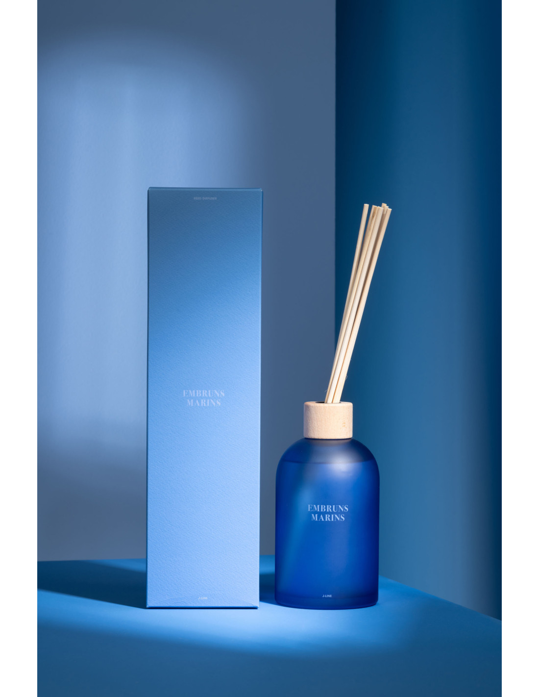 Grand Diffuseur de parfum à bâtonnets Mélange frais Embruns Marins 550 ml Verre Bleu Accords Essentiels