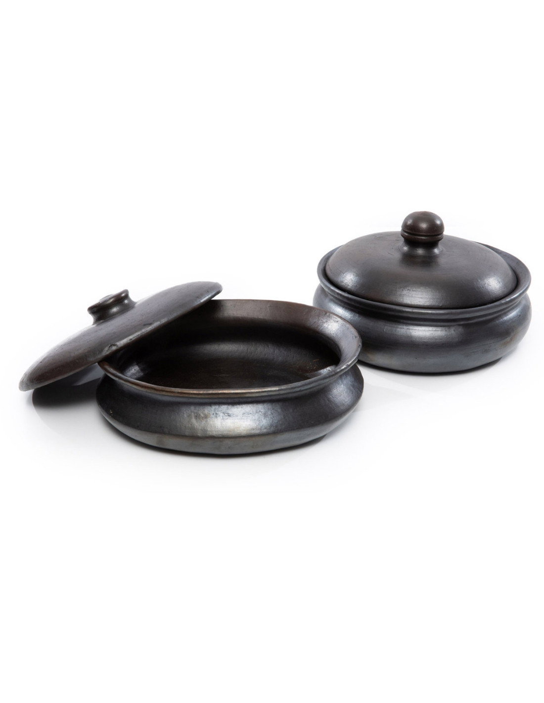 Grand Faitout cocotte rond avec couvercle 24 cm Terre cuite Noir Effet brulé The Burned