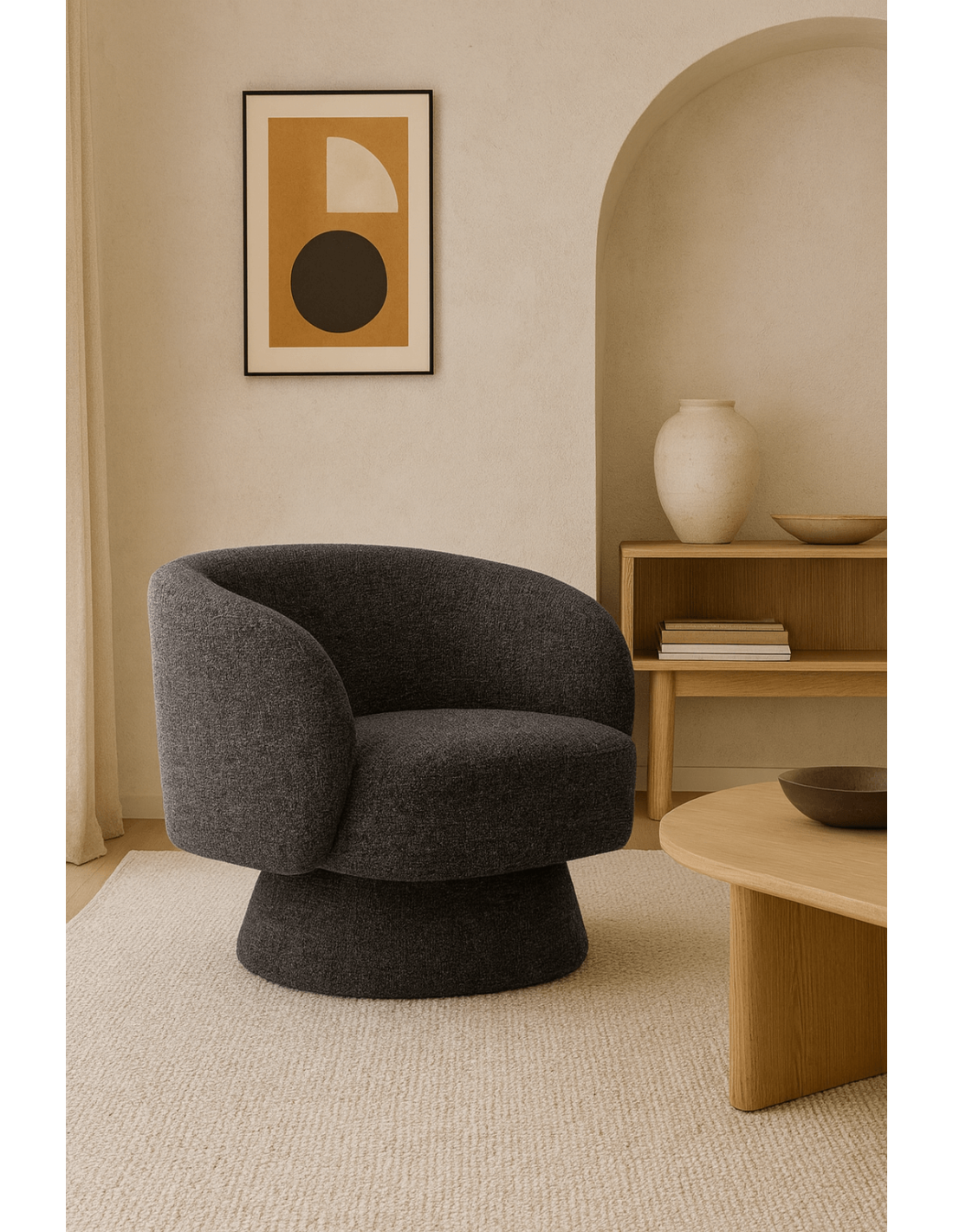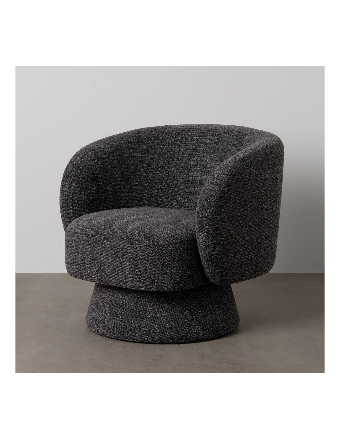 Grand Fauteuil de salon moderne rond Tissu Gris foncé Chiné Enrilo