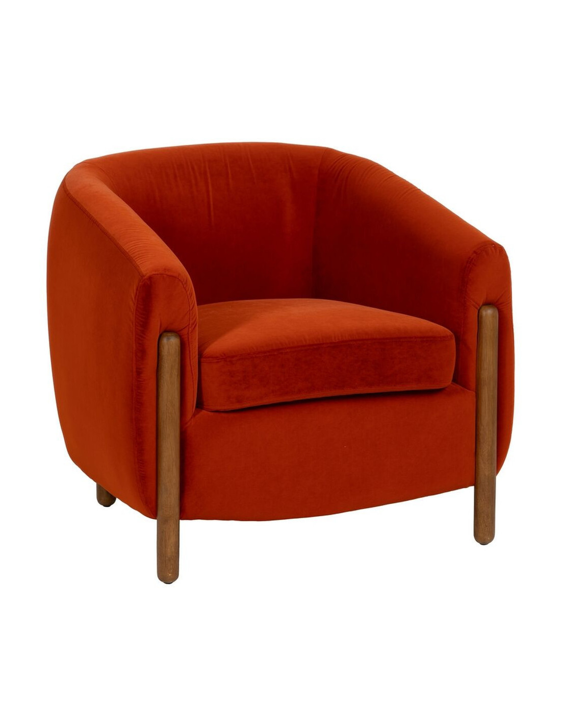 Grand Fauteuil moderne chic en Velours Rouge Bois d'hévéa Naturel Bueu
