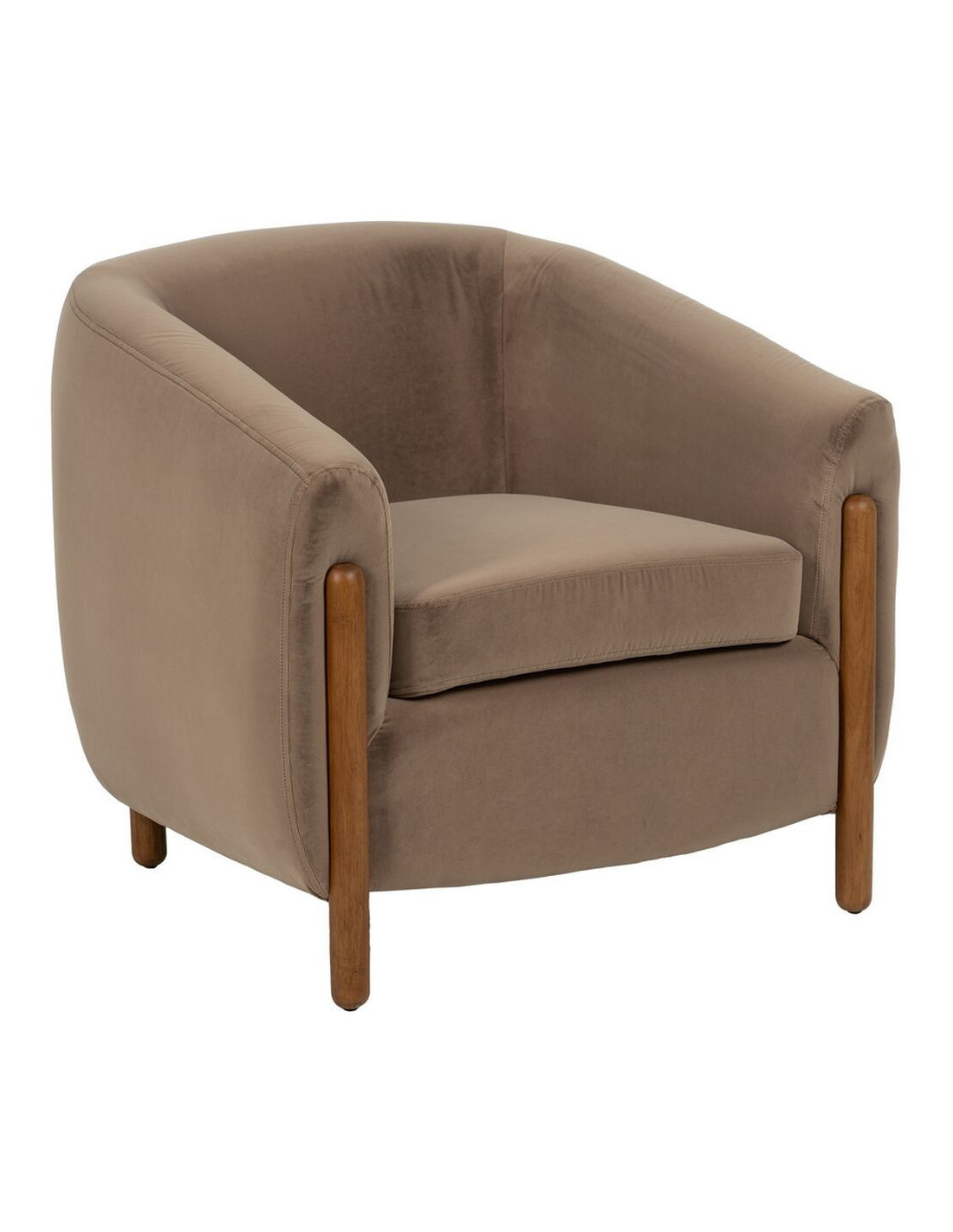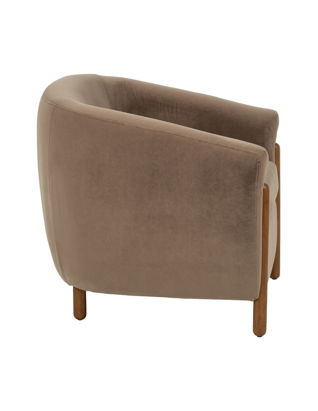 Grand Fauteuil moderne chic en Velours Taupe Bois d'hévéa Naturel Bueu