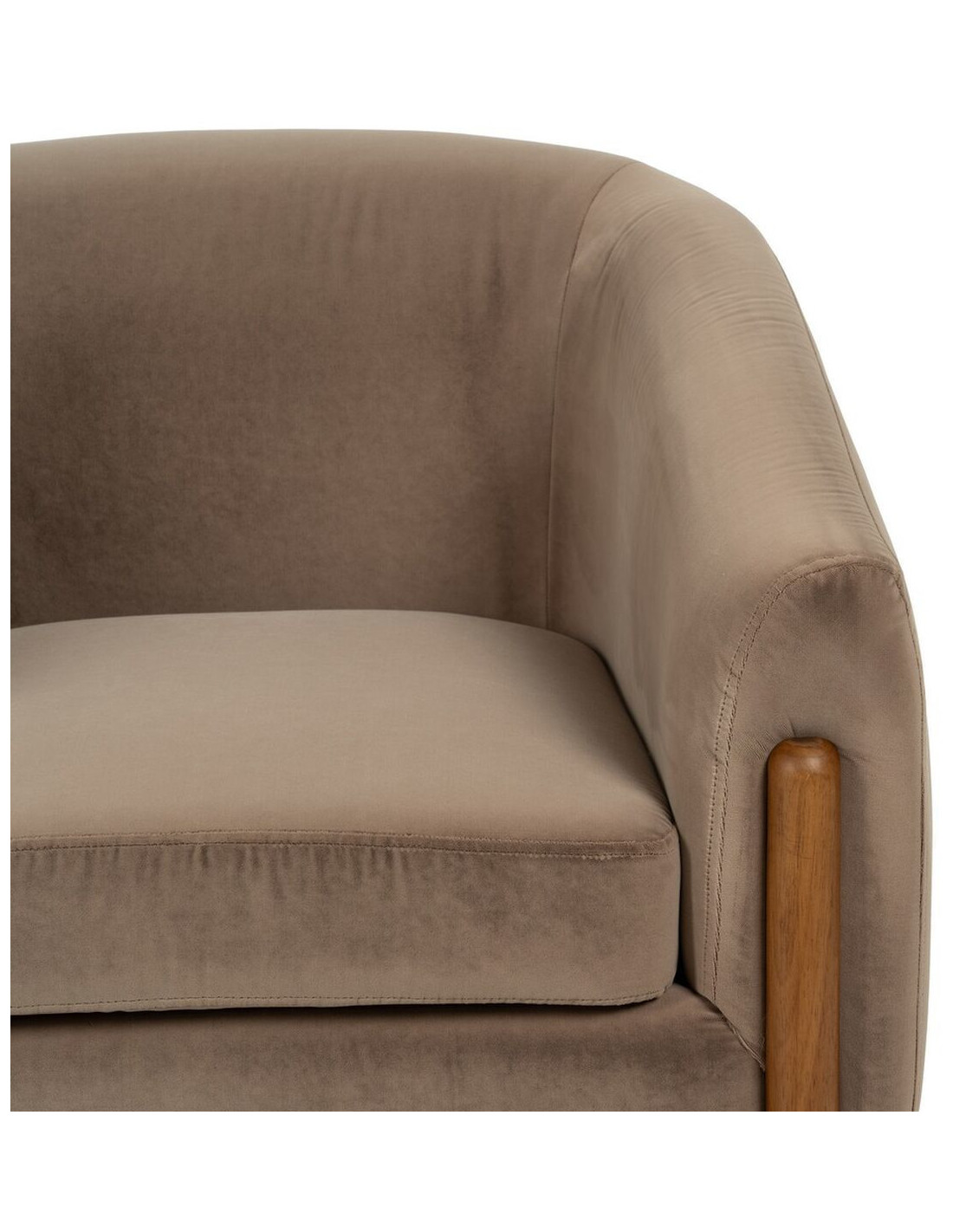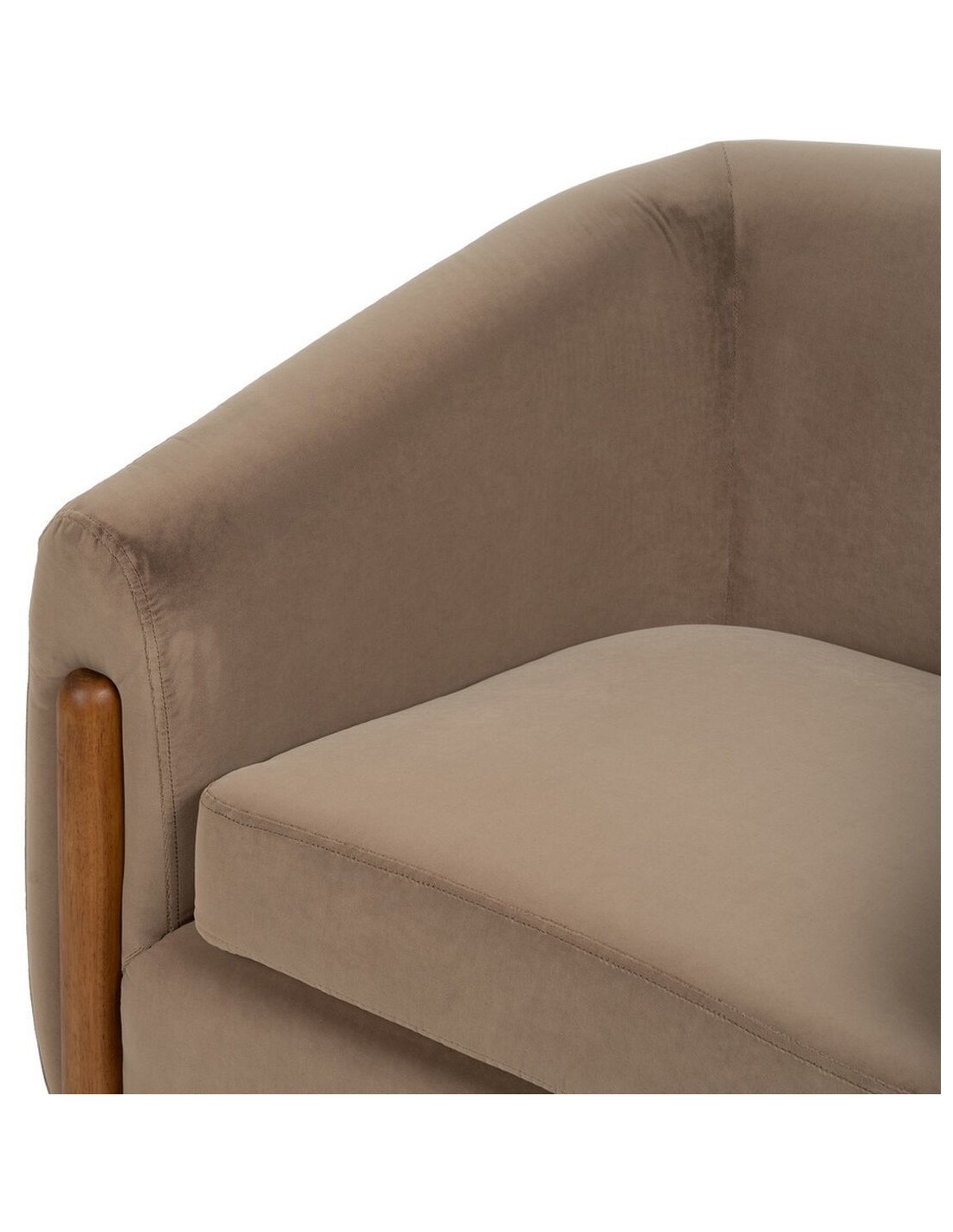 Grand Fauteuil moderne chic en Velours Taupe Bois d'hévéa Naturel Bueu - 8