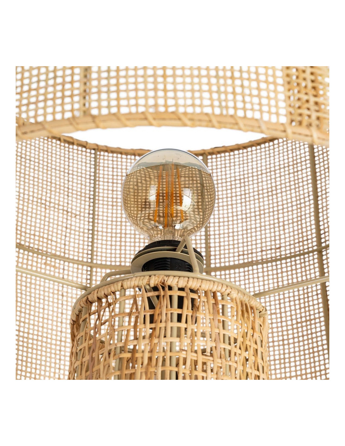 Grand Lampadaire bohème chic Hauteur 154 cm en Rotin Naturel Tressé Métal Rosiel - 2