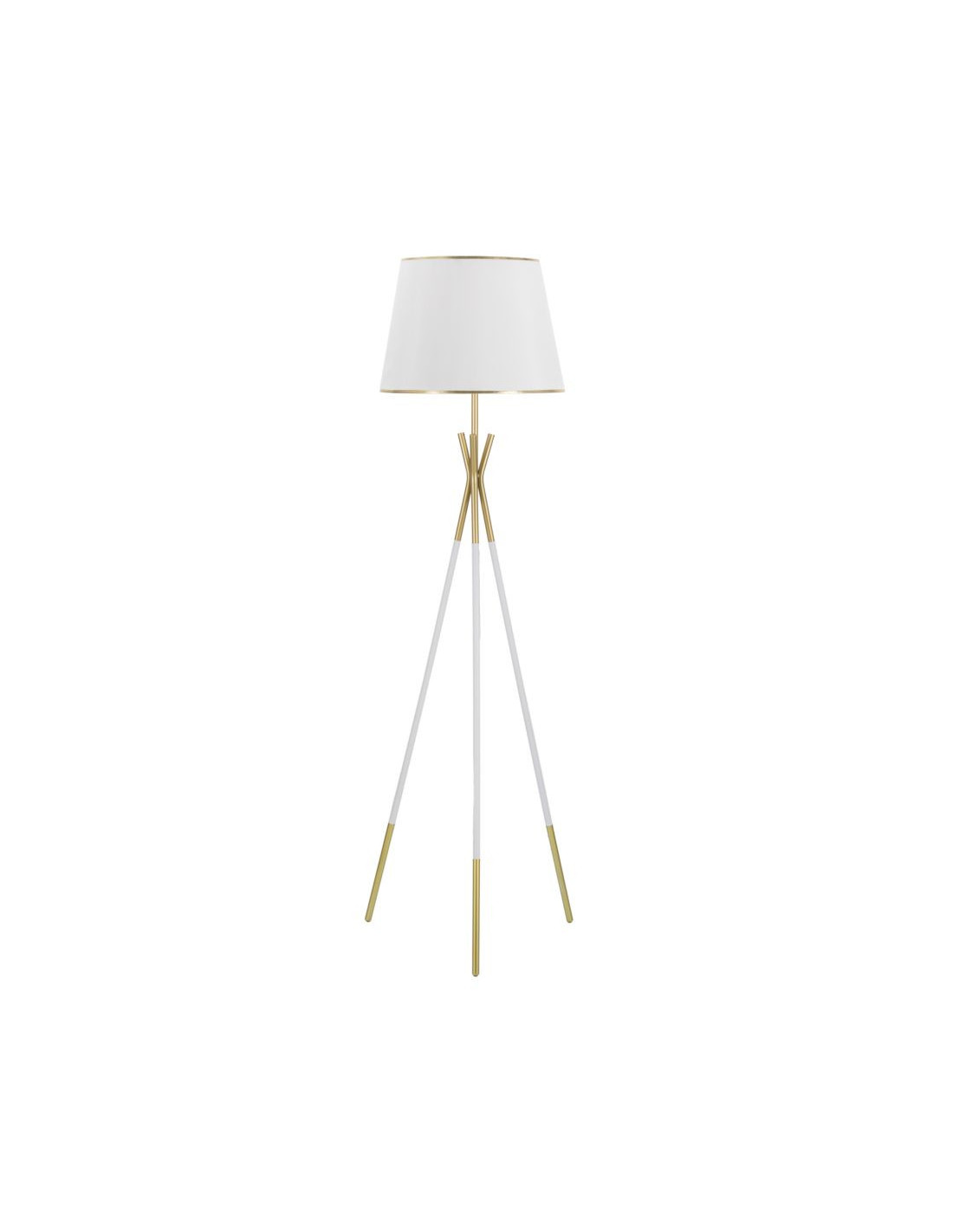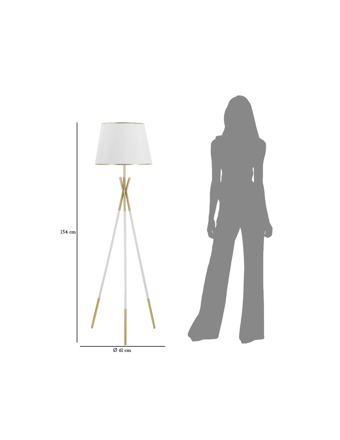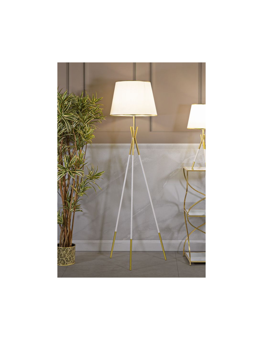 Grand Lampadaire moderne trépied Hauteur 154 cm Métal Tissu Blanc Doré Triply