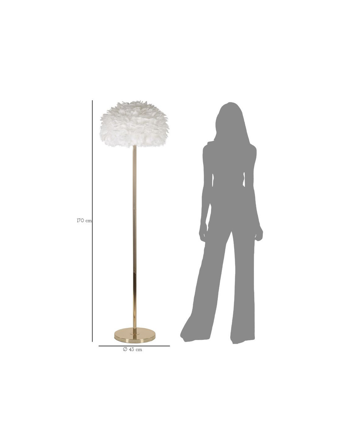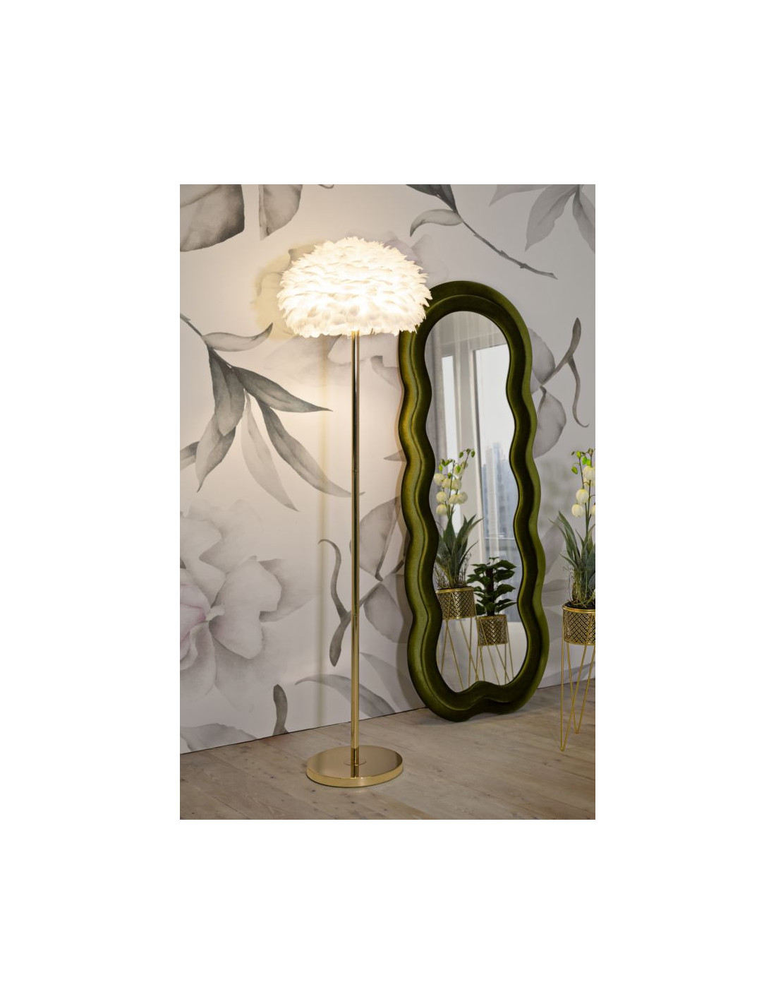 Grand Lampadaire sur pied chic Plumes Hauteur 170 cm Métal Doré Polypropylène Blanc Feathers
