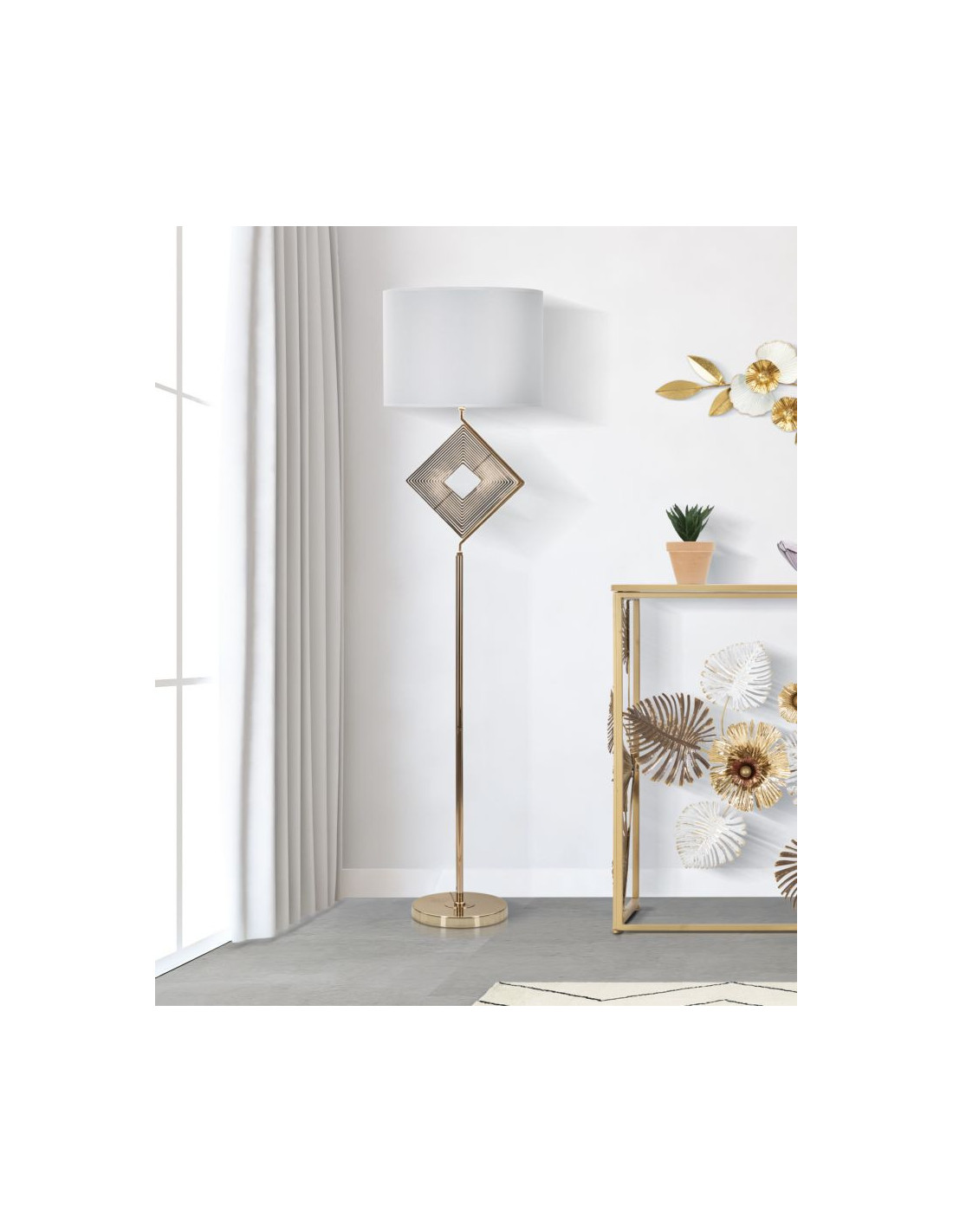 Grand Lampadaire sur pied design art déco Métal Doré Tissu Blanc Move