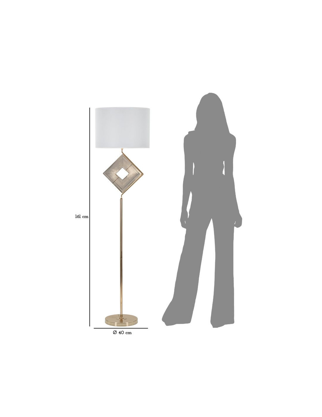 Grand Lampadaire sur pied design art déco Métal Doré Tissu Blanc Move H 161 cm