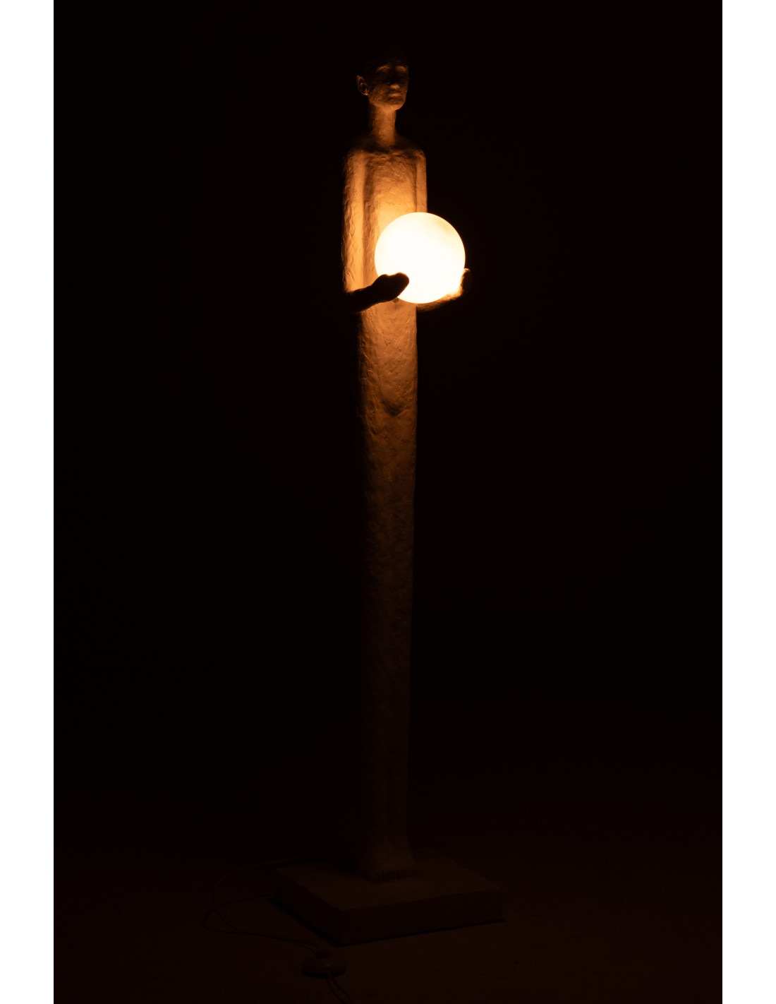 Grand Lampadaire sur pied ethnique organique H 153 cm Papier mâché Brun terre Tissu Beige The Lampatha Christie