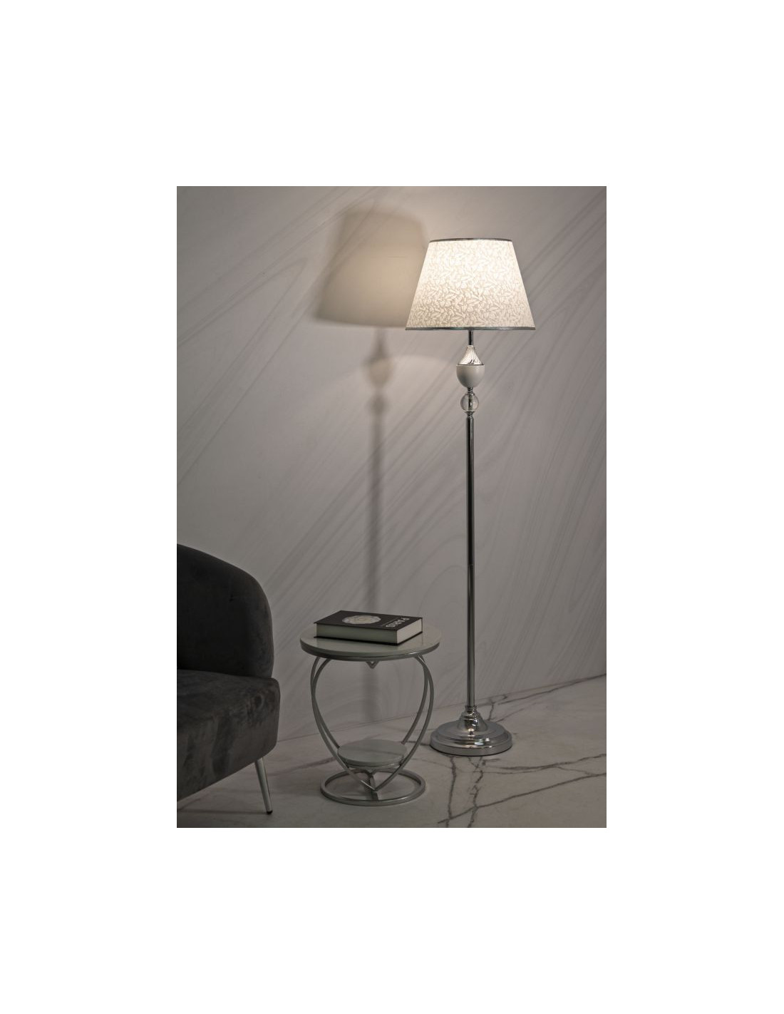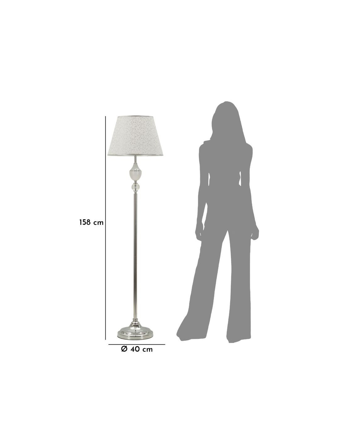 Grand Lampadaire sur pied hôtel chic Hauteur 158 cm Métal Argenté Tissu Blanc Kody