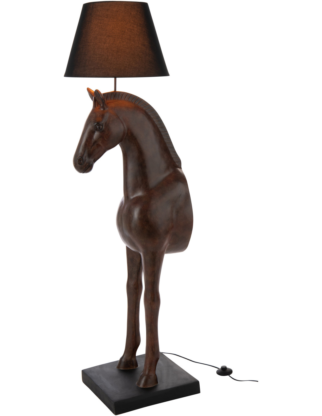 Grand Lampadaire sur pied moderne Cheval Hauteur 153 cm en Résine Marron foncé Tissu Noir Horson - 1