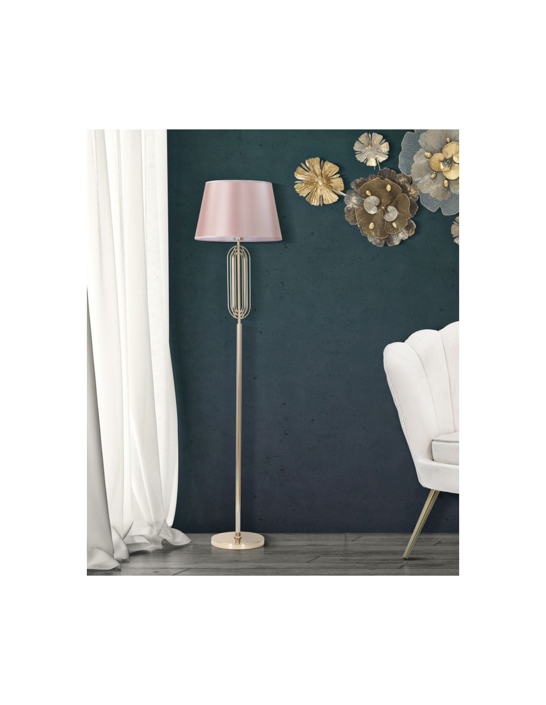 Grand Lampadaire sur pied moderne chic Hauteur 168 cm Métal Doré Tissu Rose Krista