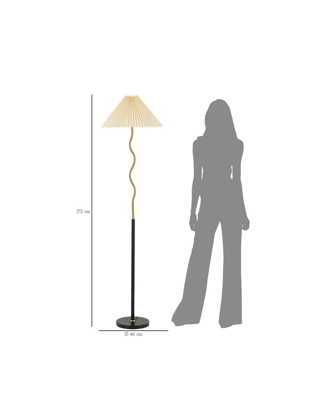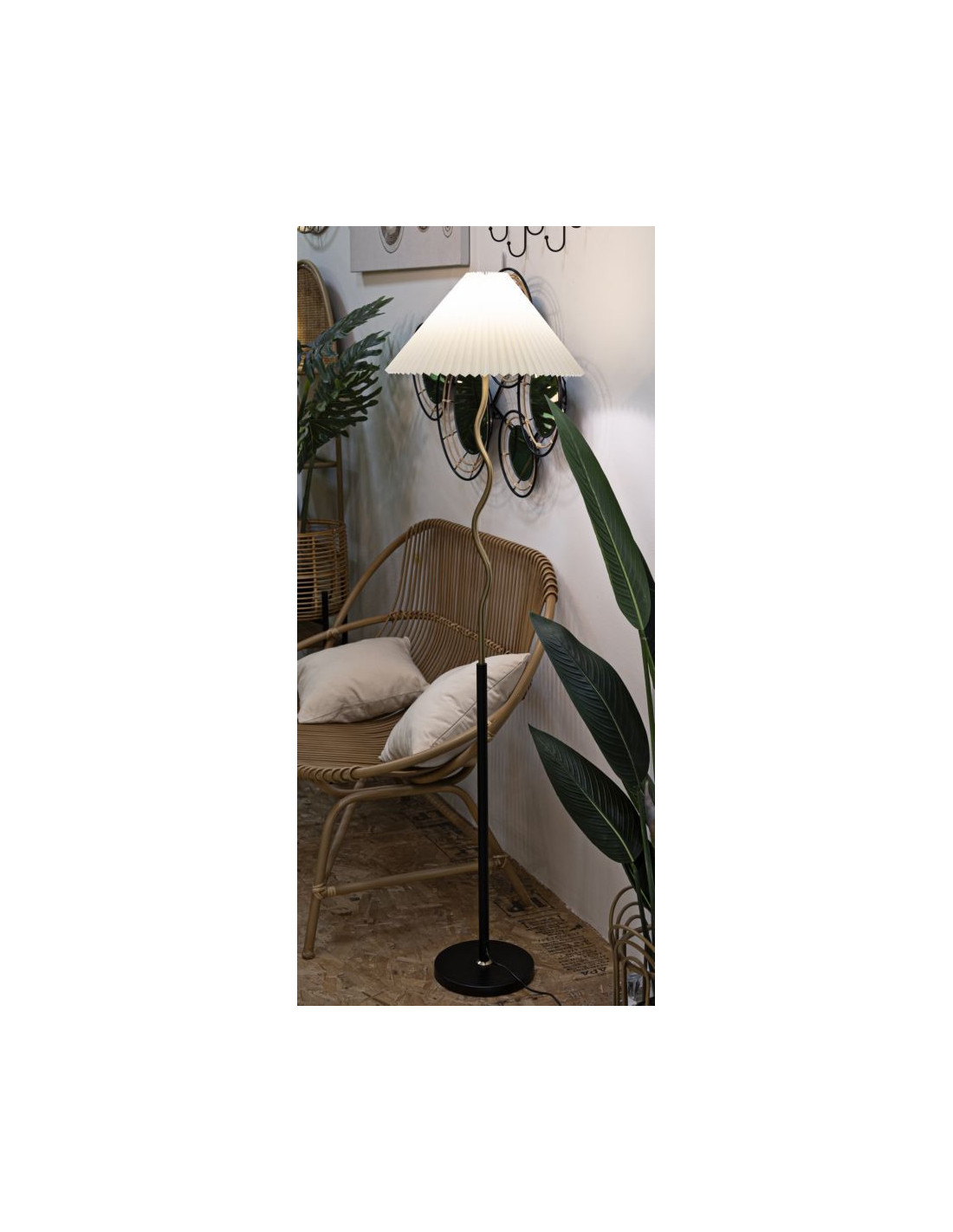 Grand Lampadaire sur pied neo japandi Hauteur 172 cm Métal Noir Doré Polypropylène Blanc Closy