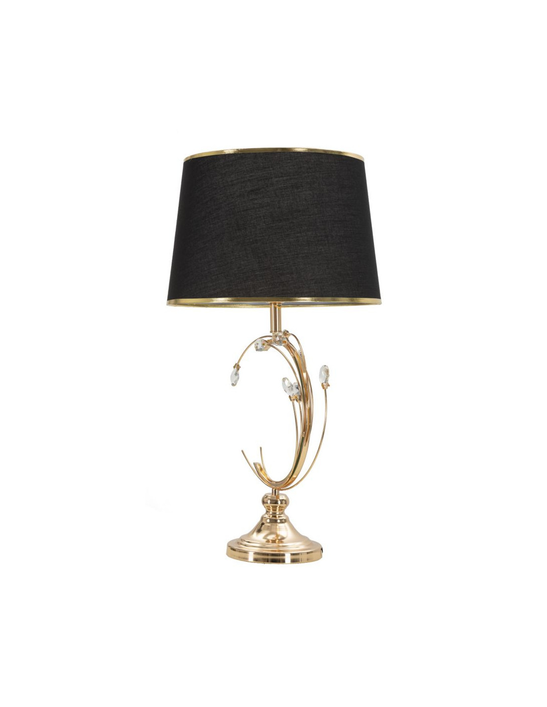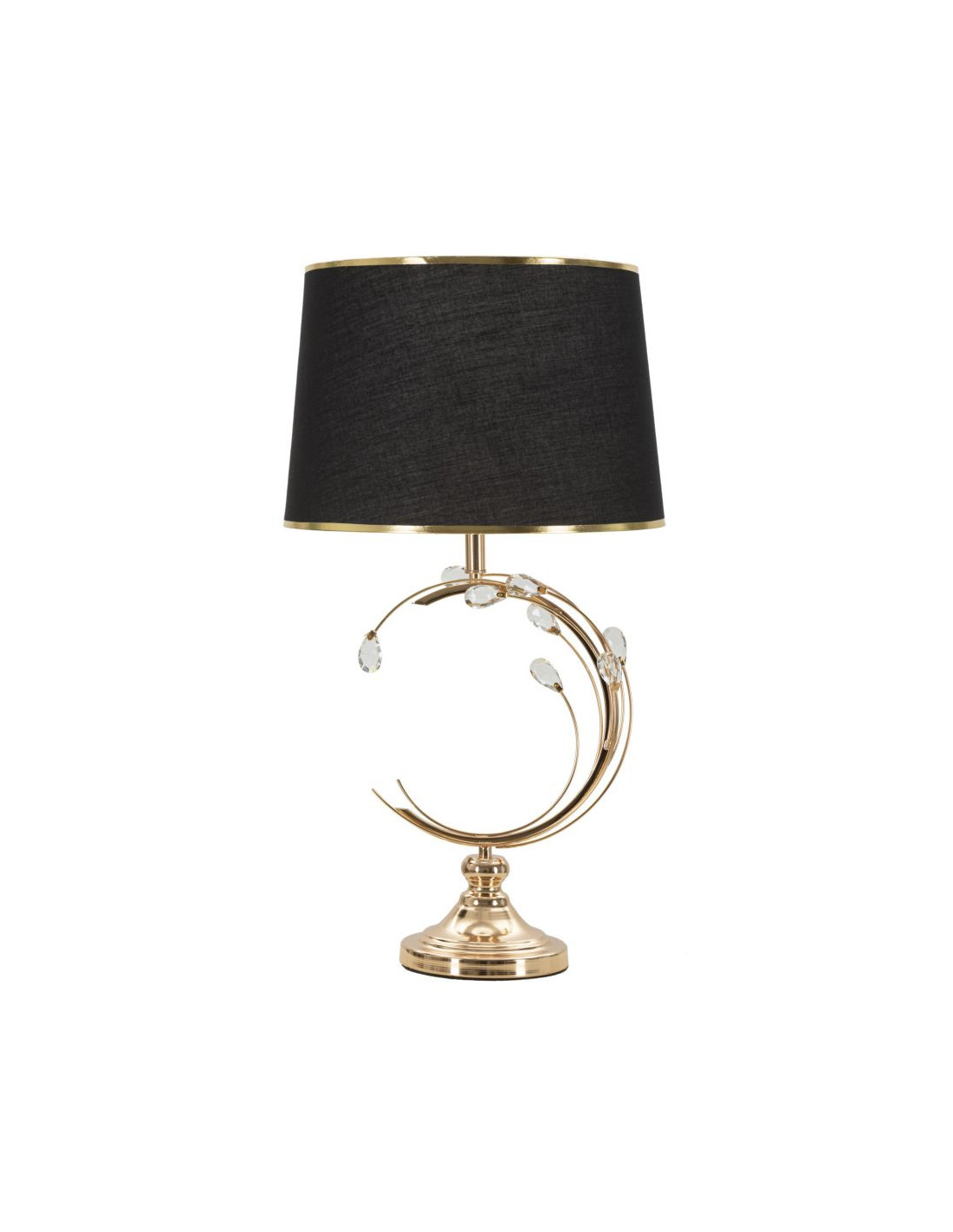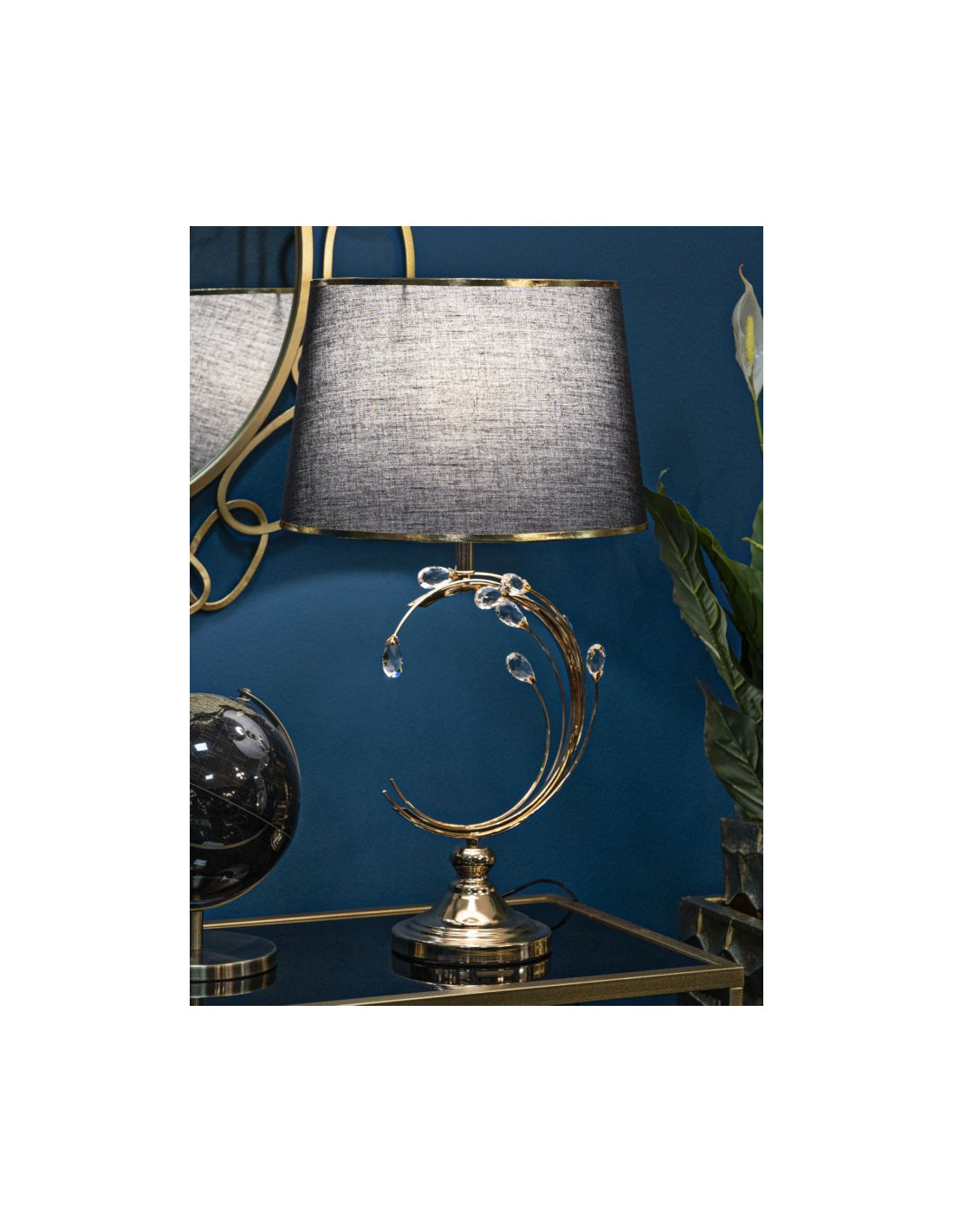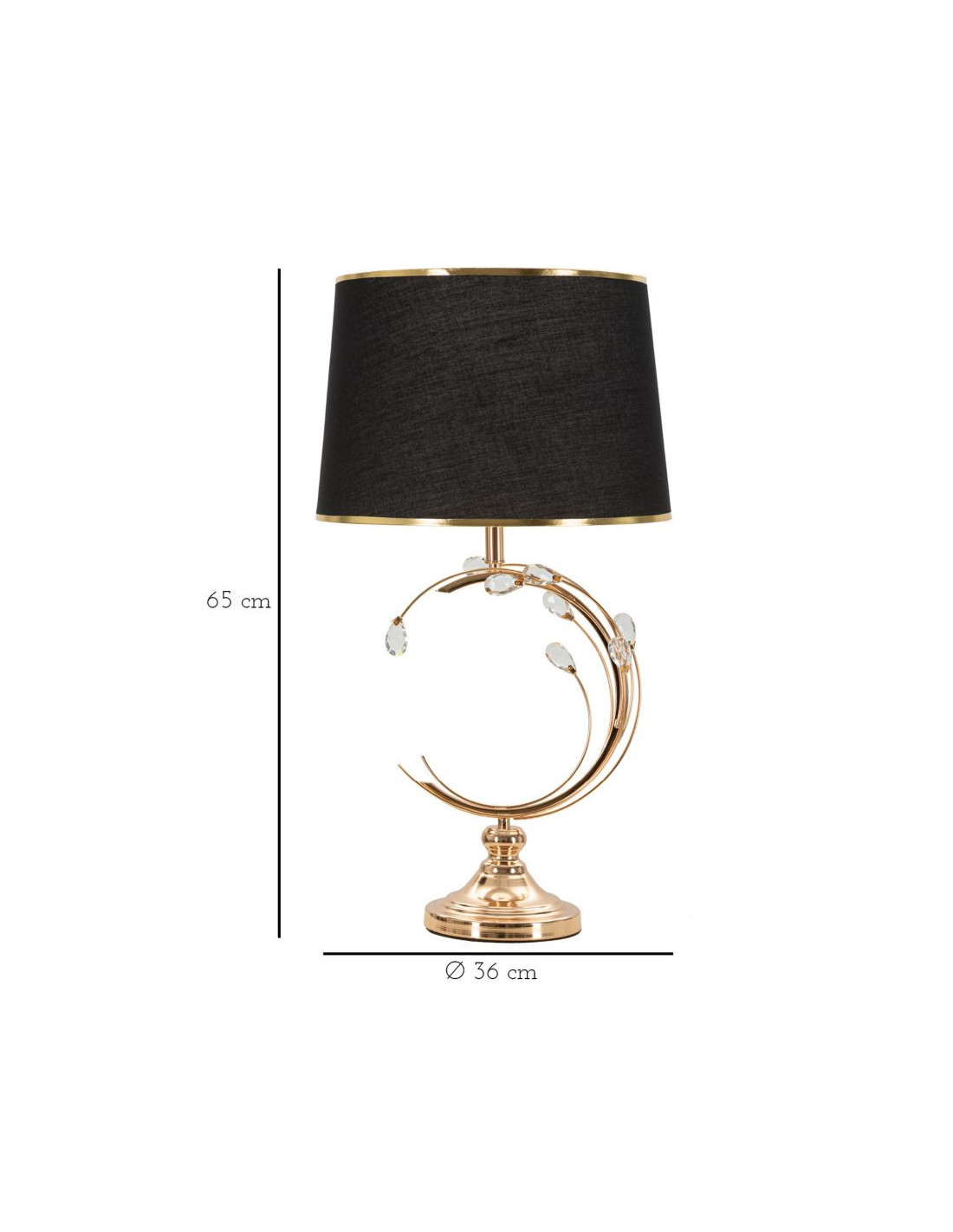 Grand Lampe à poser moderne chic Hauteur 65 cm Métal Doré Tissu Noir Verre Transparent Bruxelles