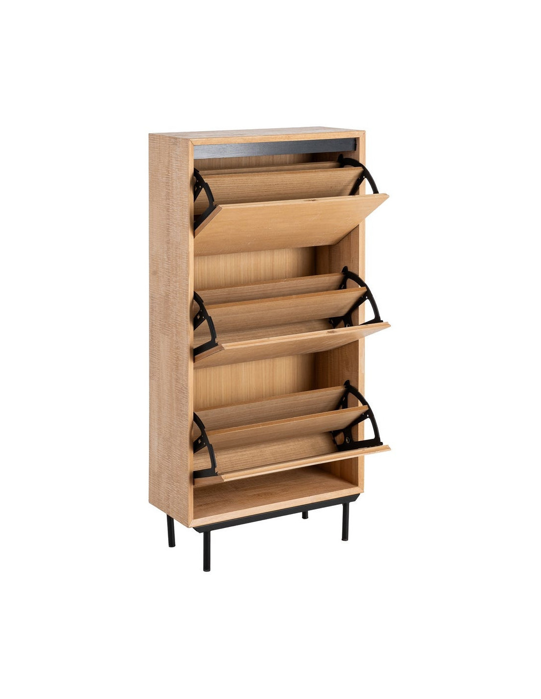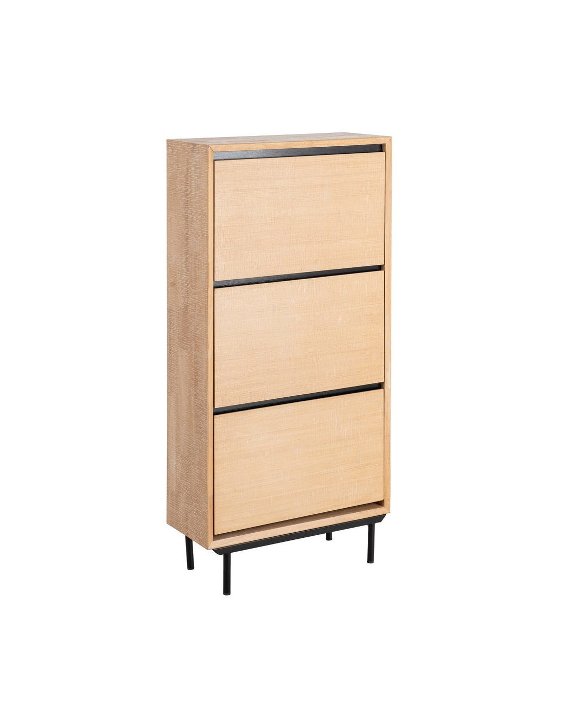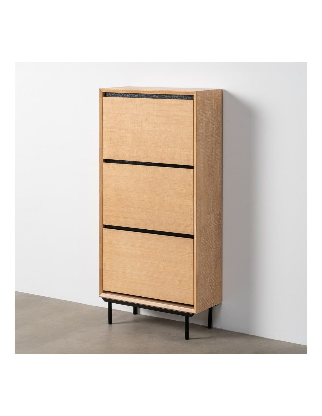 Grand Meuble à chaussures moderne chic 3 tiroirs en Bois d'hévéa Bois MDF Naturel Métal Noir Sintra