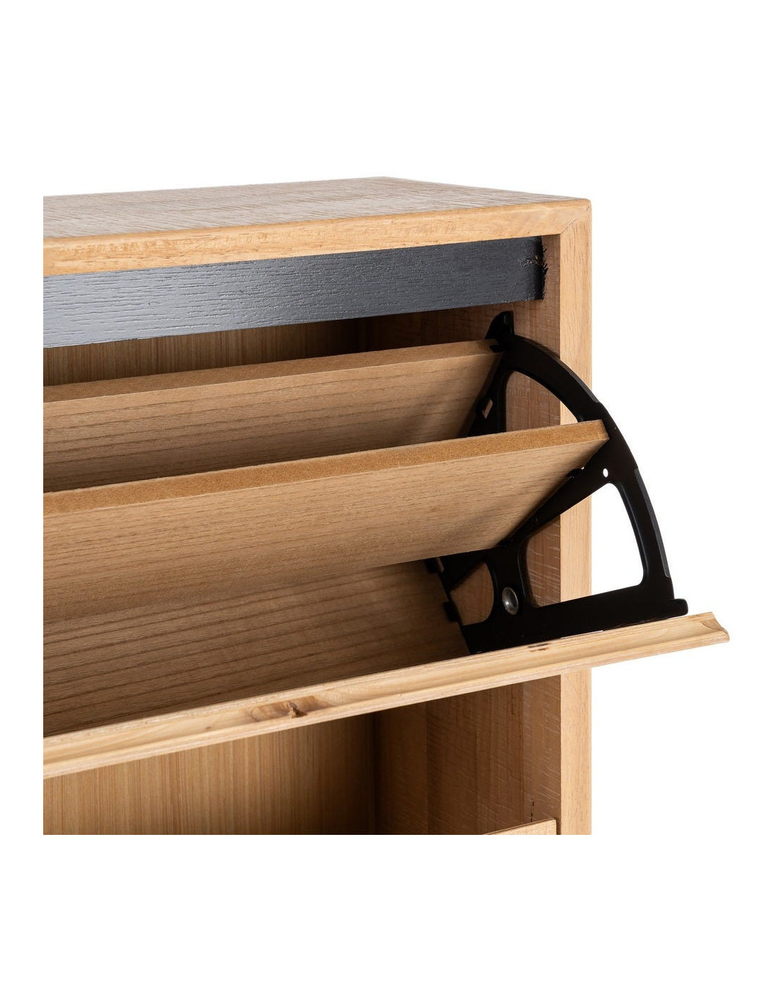 Grand Meuble à chaussures moderne chic 3 tiroirs en Bois d'hévéa Bois MDF Naturel Métal Noir Sintra - 2