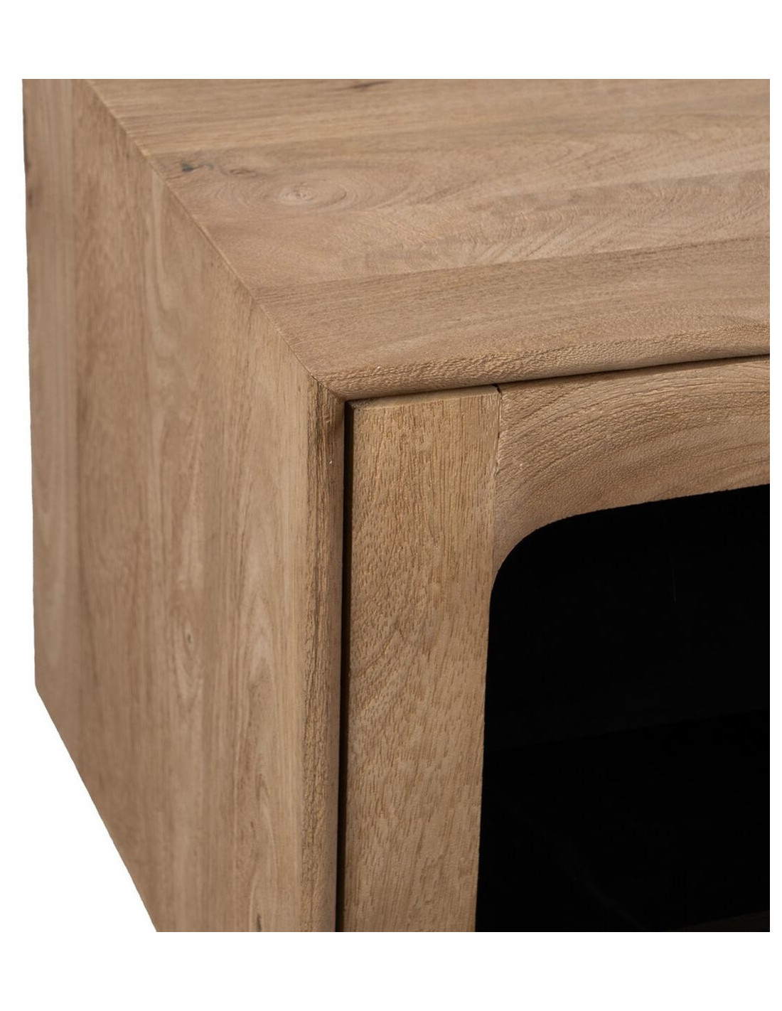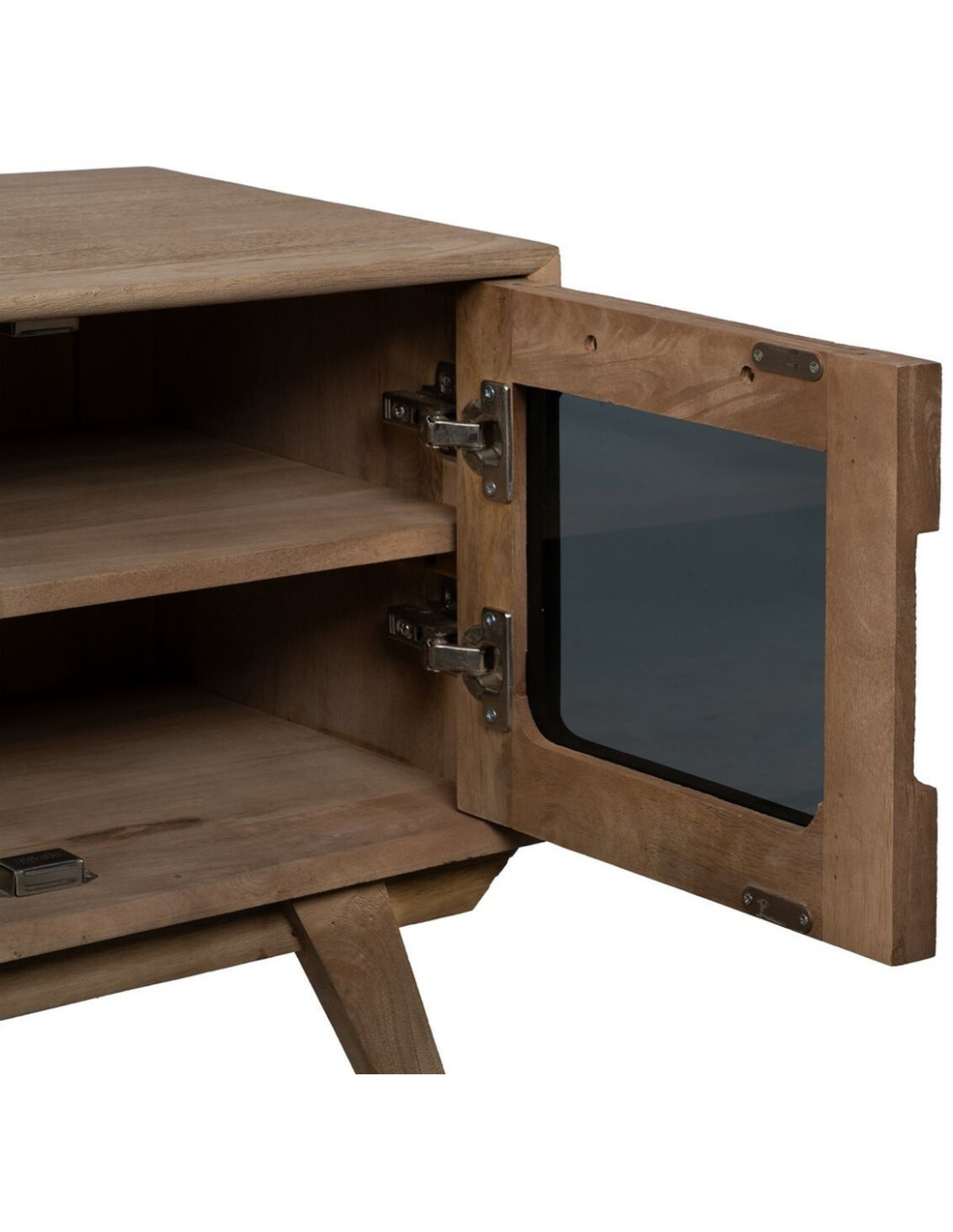 Grand Meuble de télé moderne 4 portes 1 tiroir 1 niche en Bois de manguier Naturel Verre Noir Semi transparent Burnie - 8