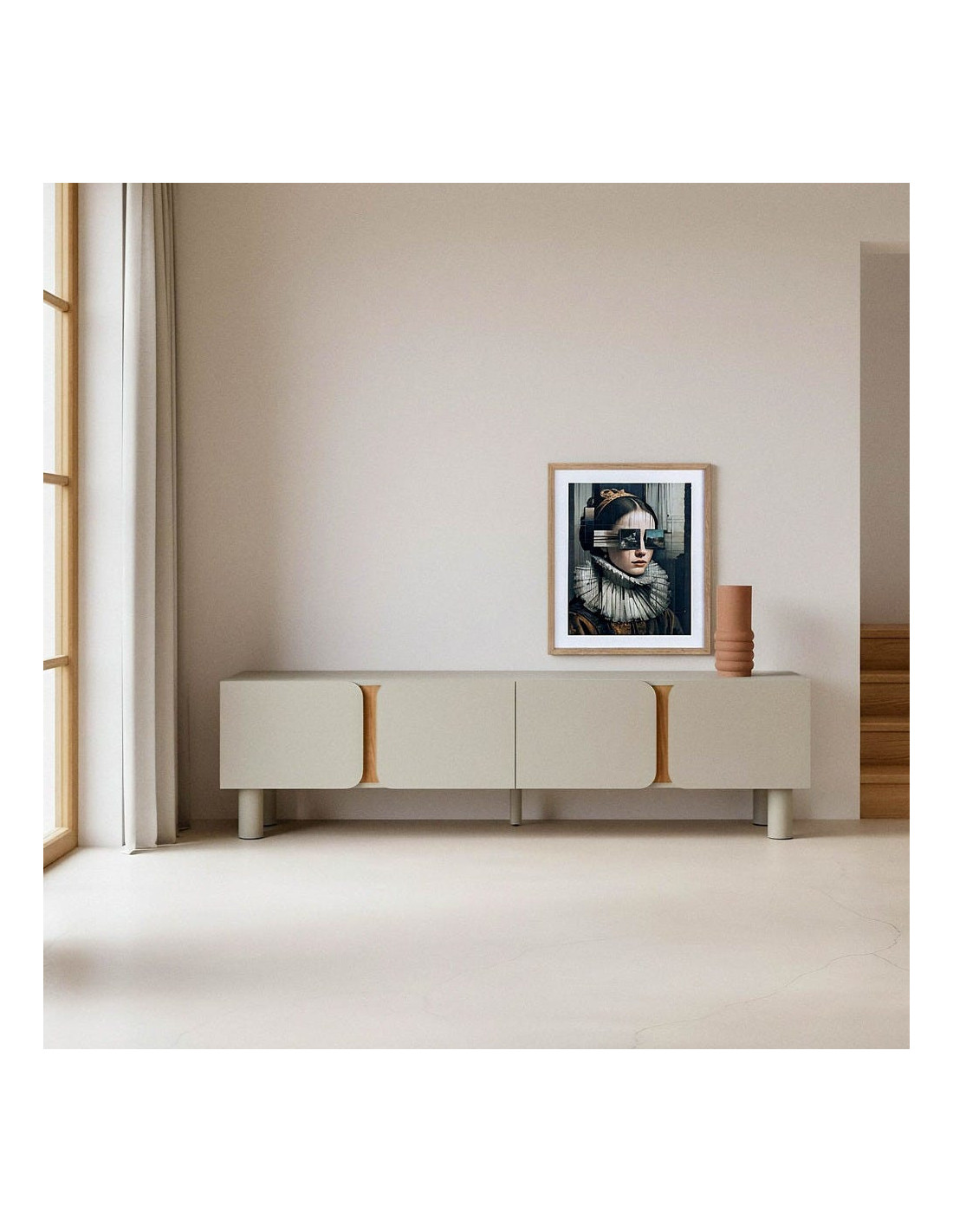 Grand Meuble télé design 4 portes en Bois MDF Taupe Naturel Malta - 1