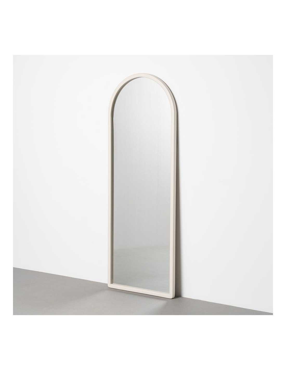 Grand Miroir mural arrondi Arche 60x160 Bois de paulonwnia Blanc cassé Arkhéo