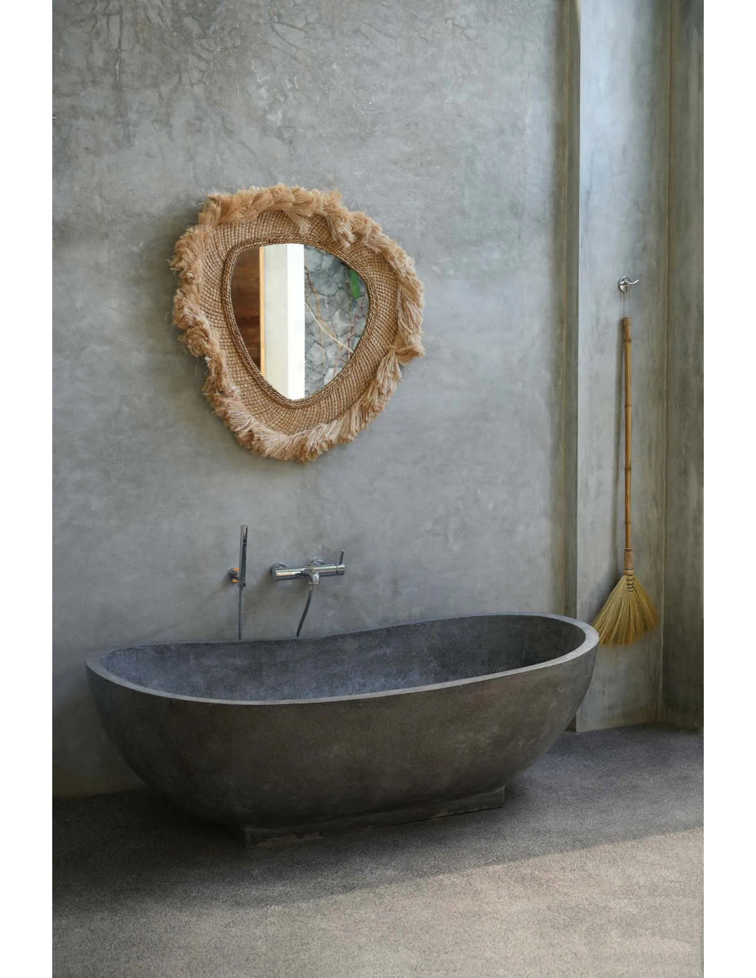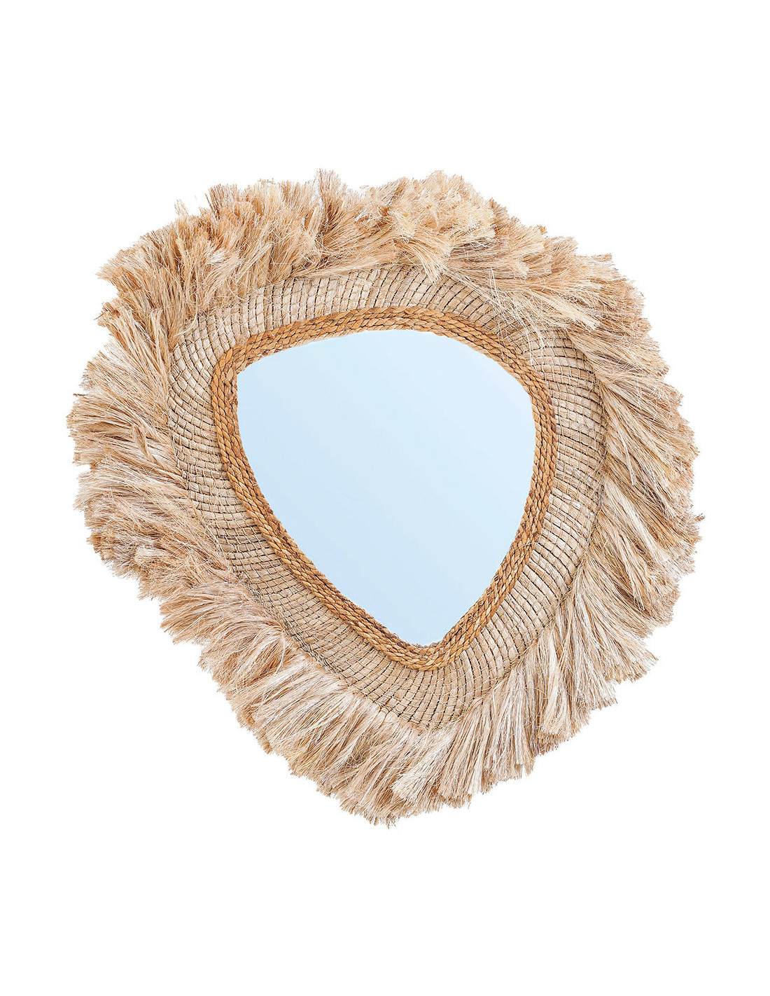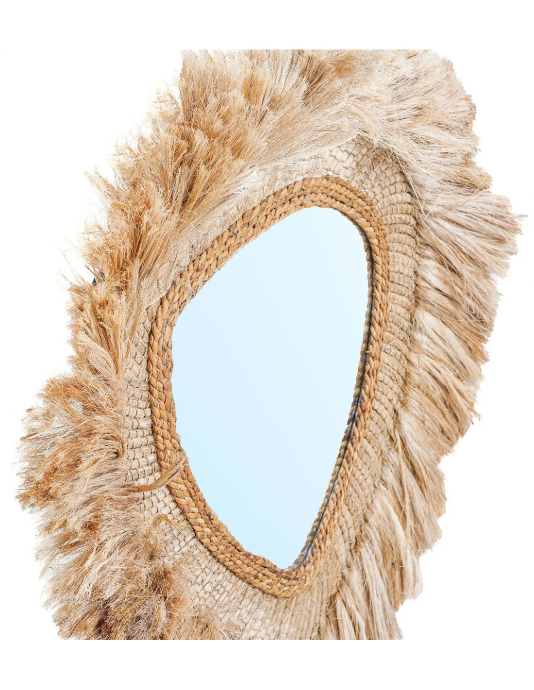 Grand Miroir mural bohème chic Organique 80x80 Herbe d'abaca Naturel The La Contessa