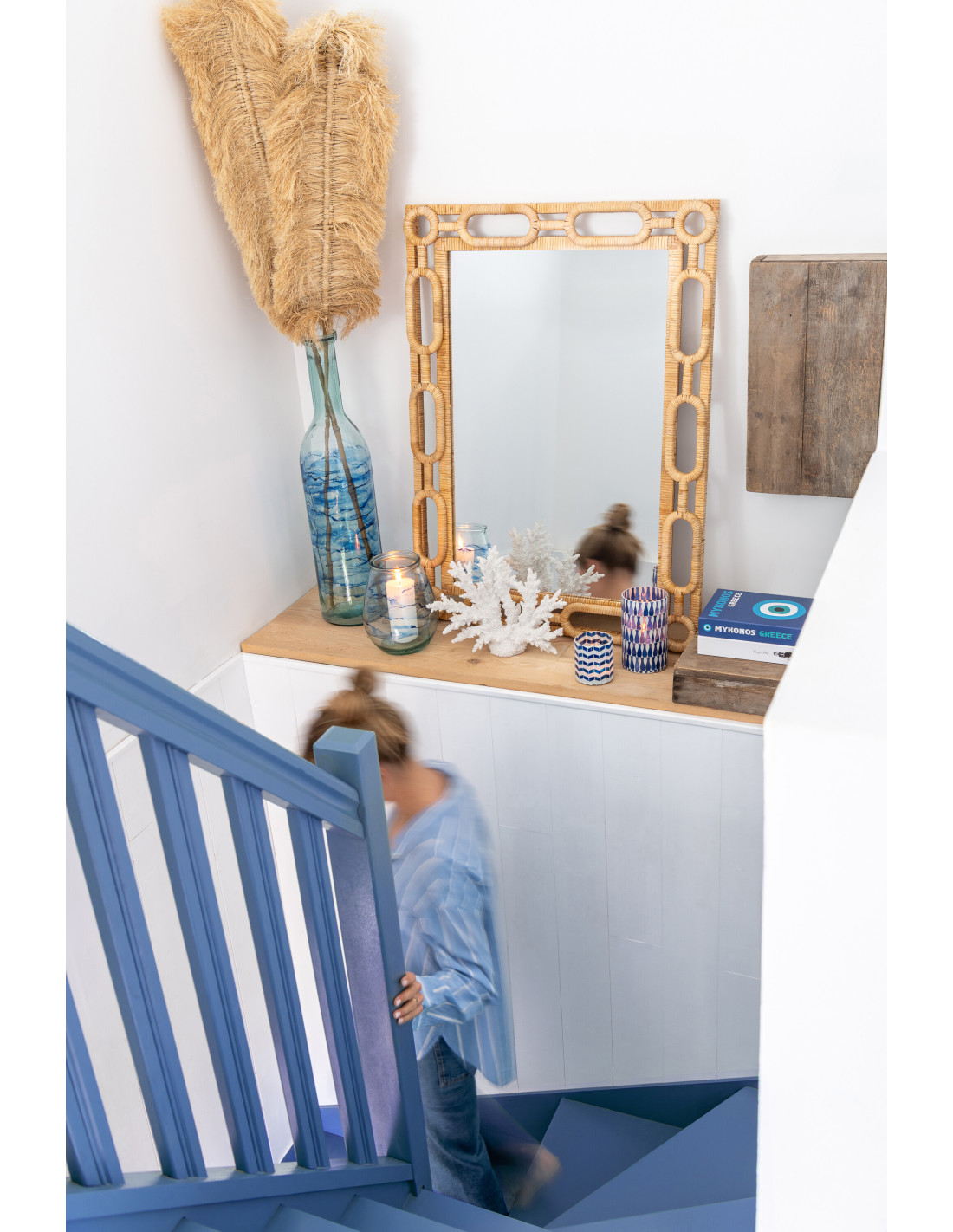 Grand Miroir mural bord de mer Anneaux Rectangulaire 75x101 Rotin Naturel Tressé Ring