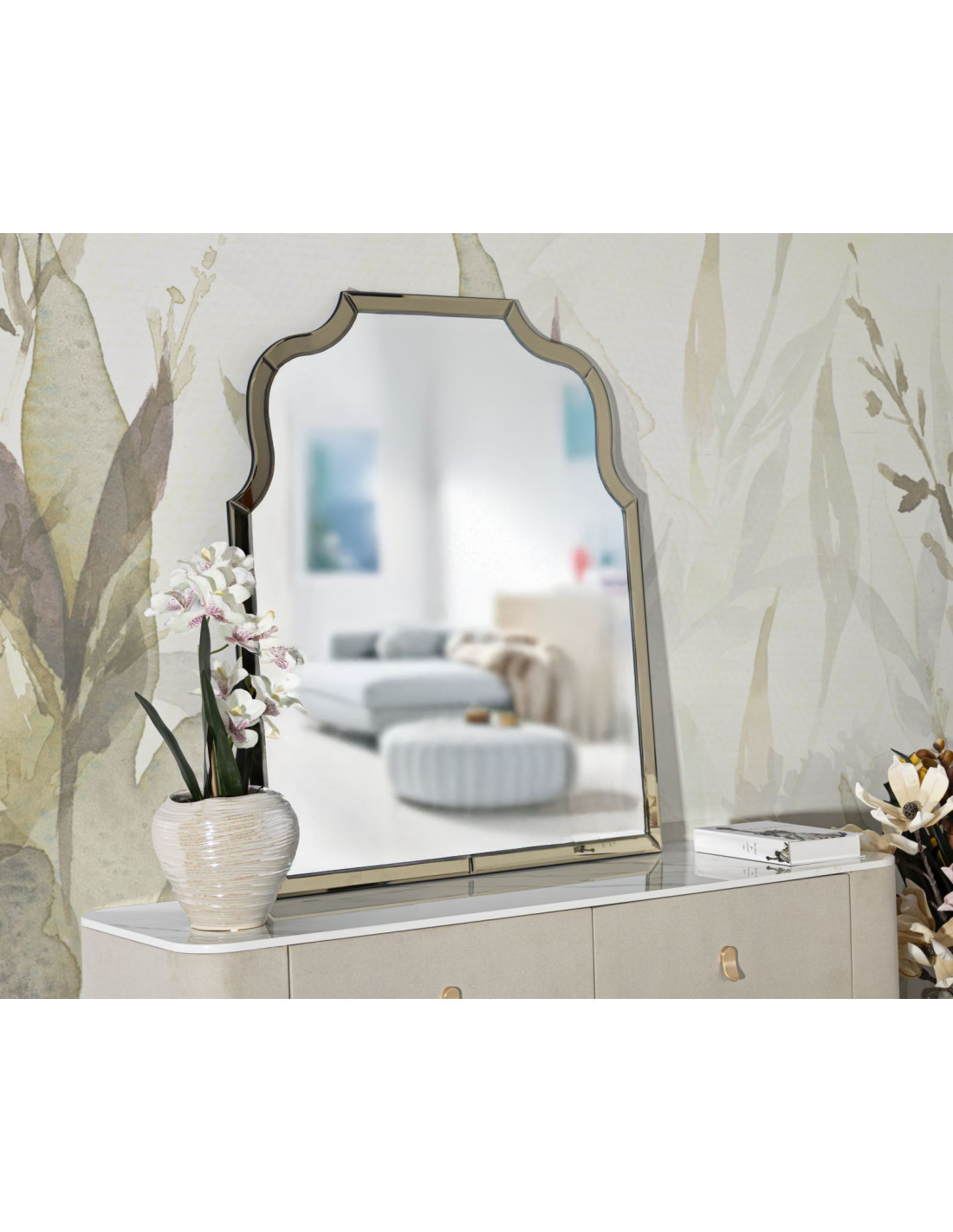 Grand Miroir mural oriental chic Arc 85x100 Bois MDF Doré Ankara
