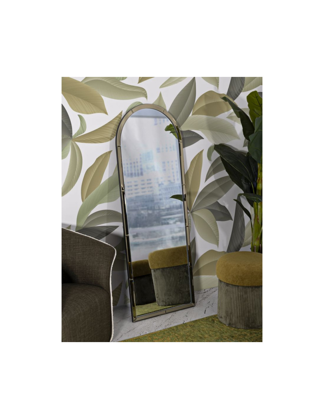 Grand Miroir mural oriental chic Arrondi 55x150 Bois MDF Doré Baku