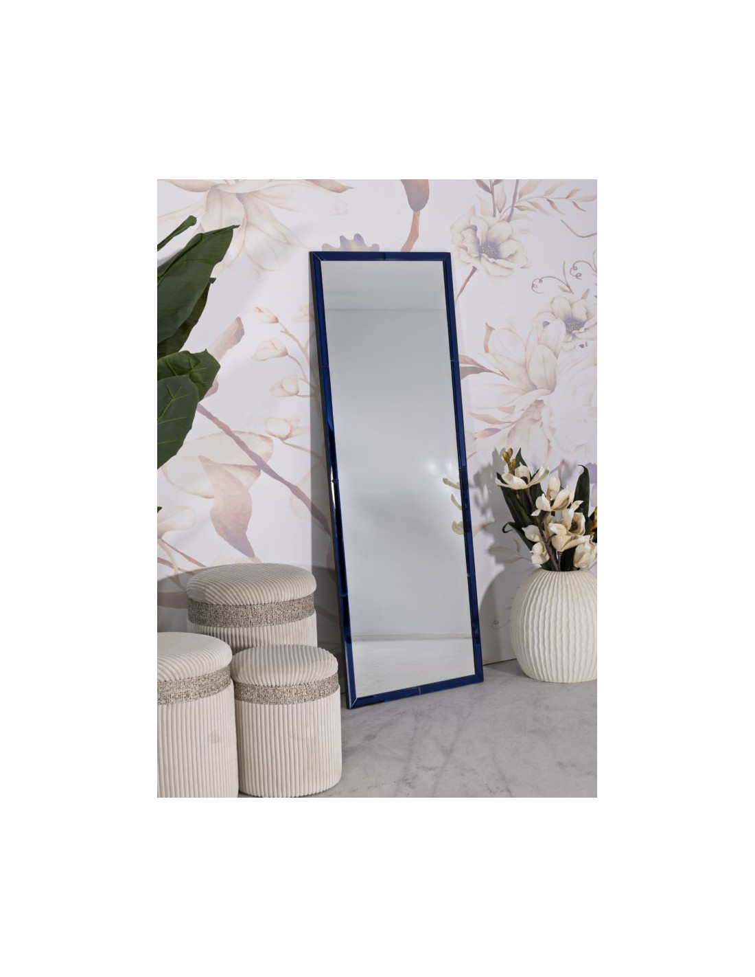 Grand Miroir mural oriental chic Rectangulaire 55x150 Bois MDF Bleu Riyad