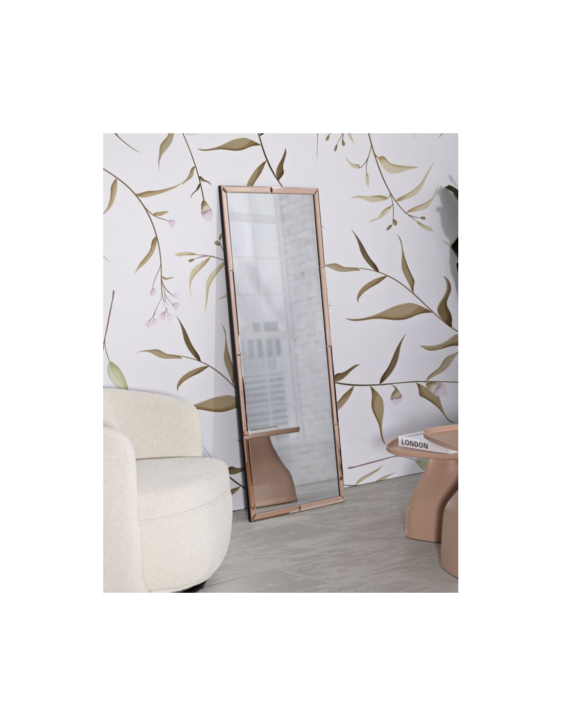 Grand Miroir mural oriental chic Rectangulaire 55x150 Bois MDF Rose Riyad