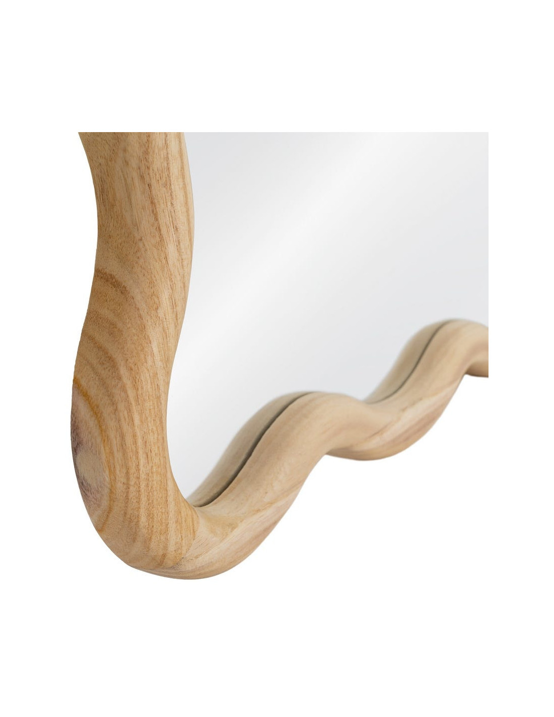 Avec ses contours ondulés et son cadre en bois naturel, le miroir Ondéro change immédiatement la perception d’un espace. Il ne se contente pas de refléter, il anime le mur et crée un jeu de lignes qui attire le regard sans jamais être rigide.