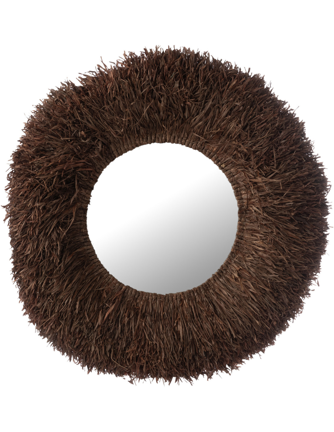 Grand Miroir mural style africain Rond 115x115 Sisal Marron Kashya