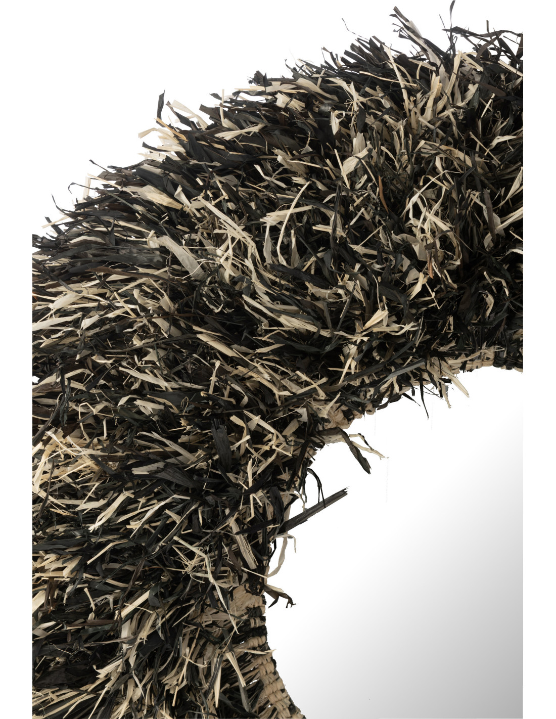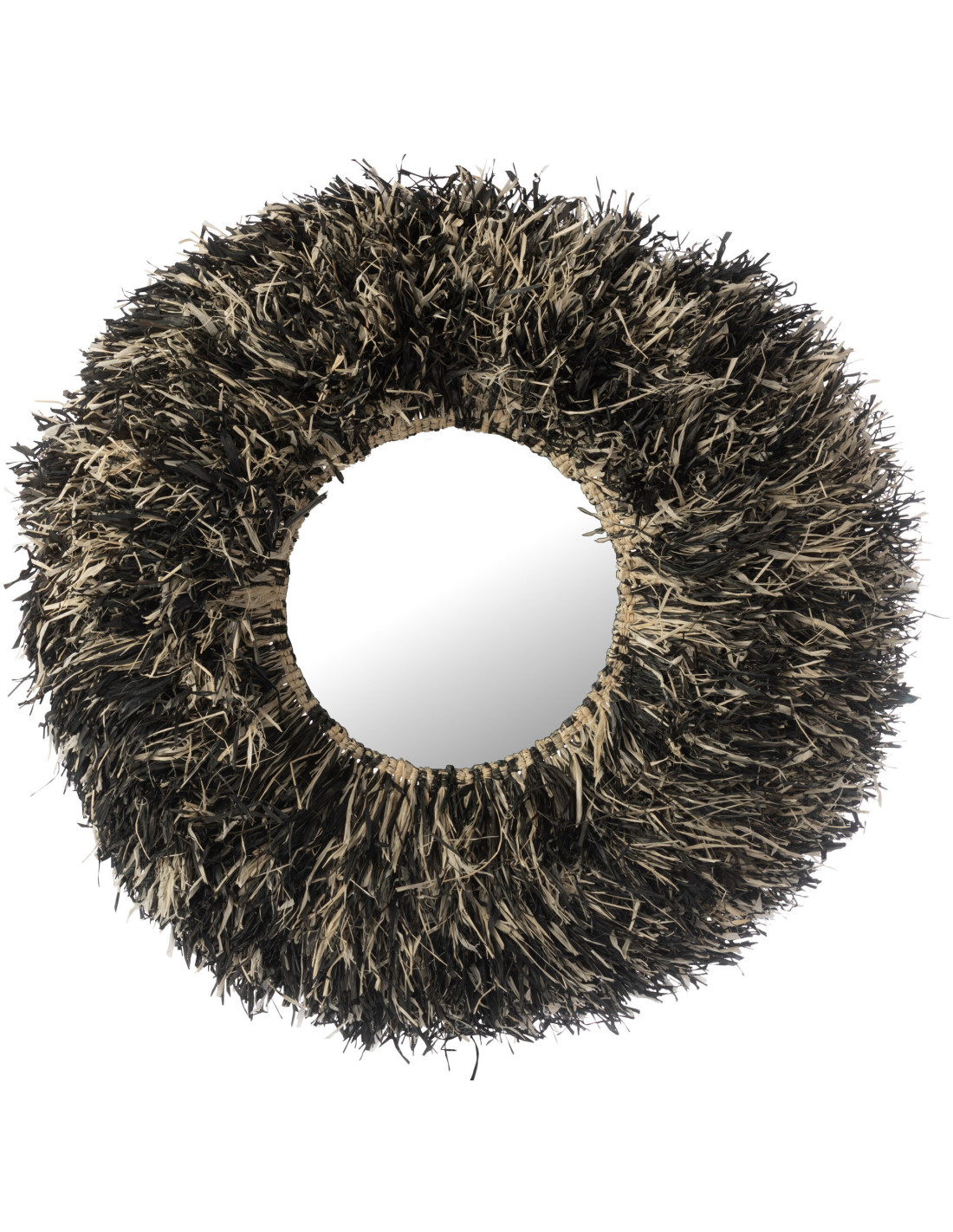 Grand Miroir mural style africain Rond 115x115 Sisal Noir Blanc Kashya