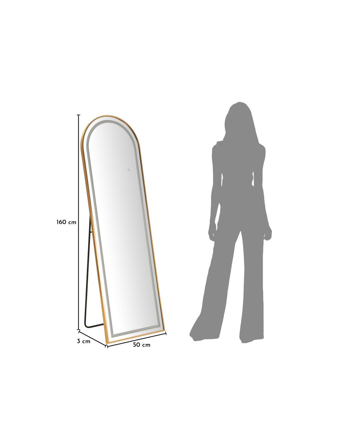 Grand Miroir sur pied lumineux LED Arche Arrondi 50x160 Métal Doré Simple